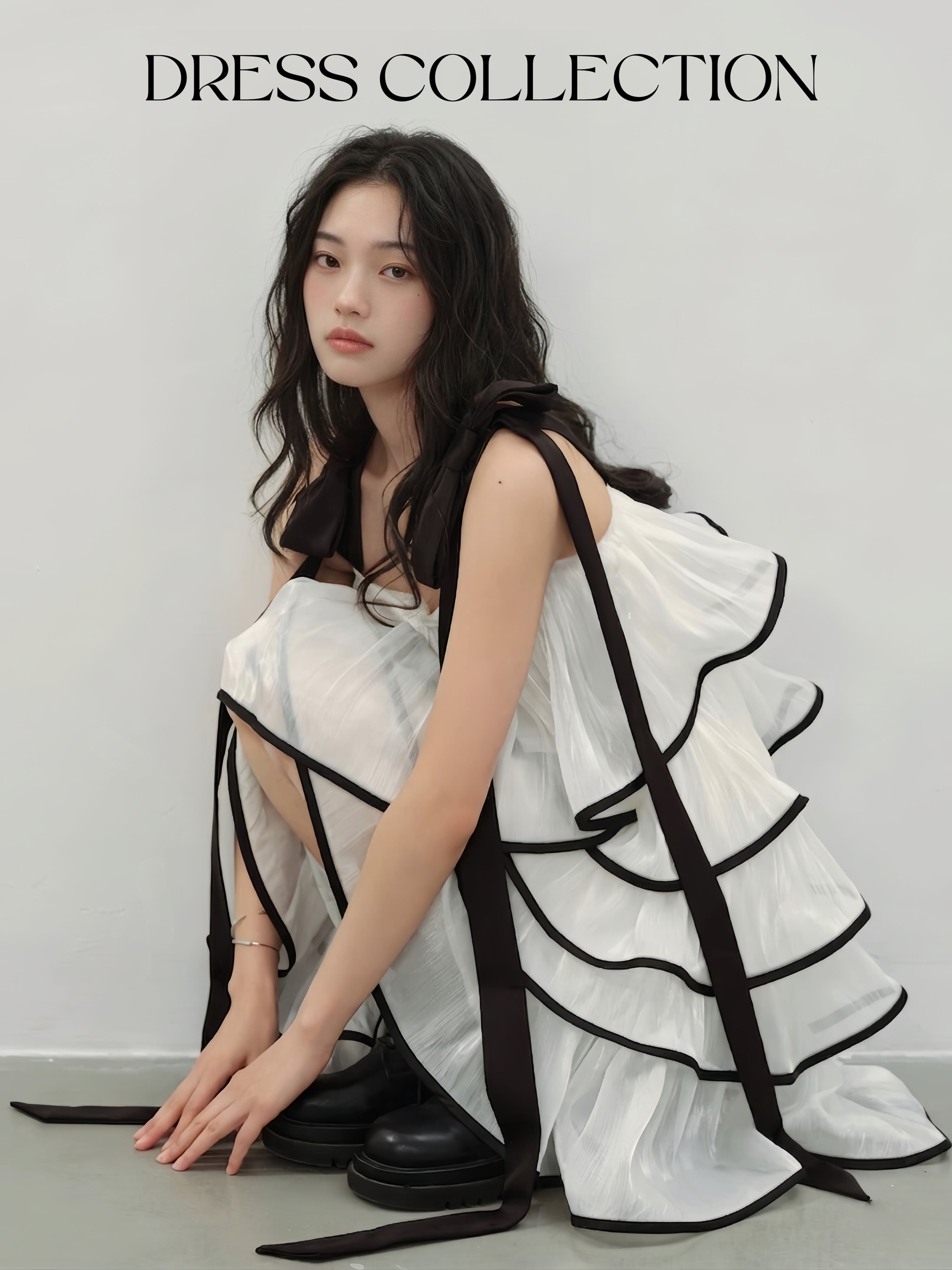 【dress】フリルマーメイドロングワンピース Q8407