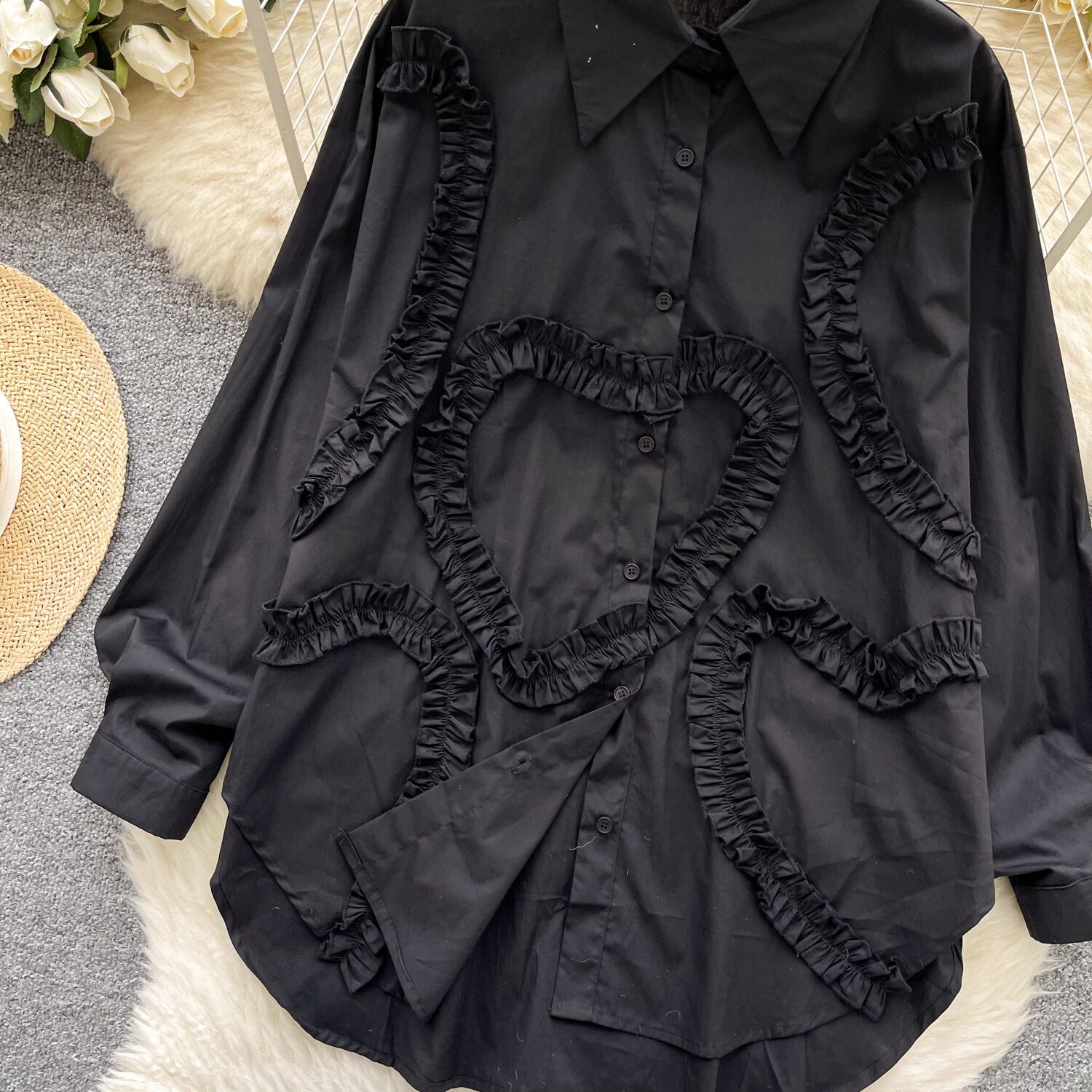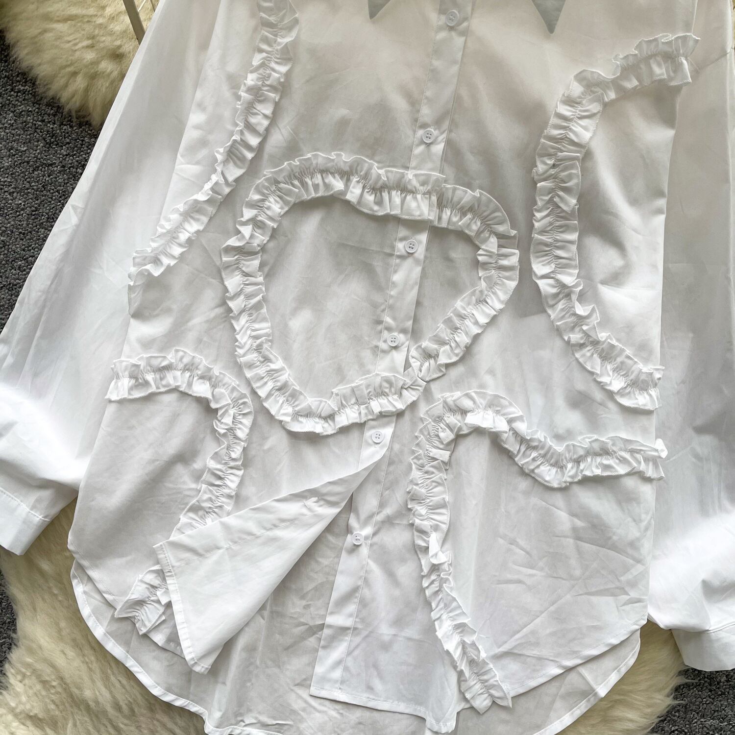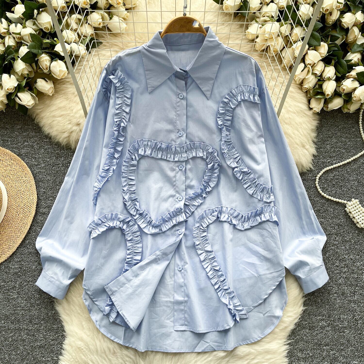 【tops】フリル人気デザインシャツブラウス M29782