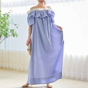 【dress】ストライプオフショルワンピース N3032