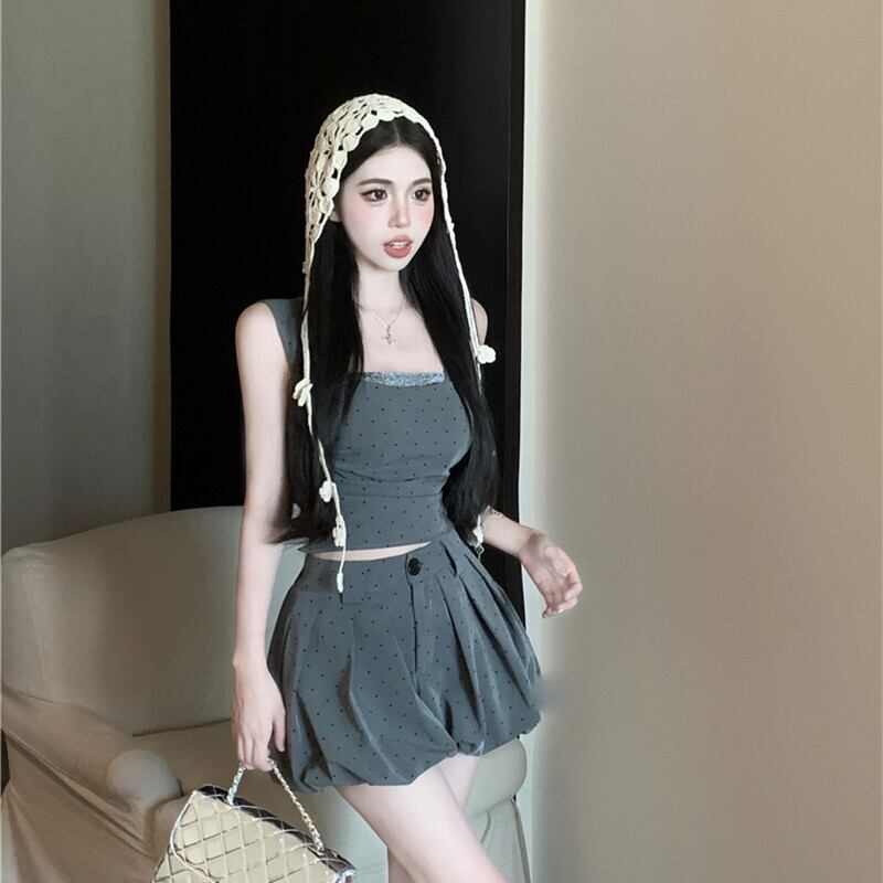 【set】ドット柄キャミソール×ショートパンツセット M30909