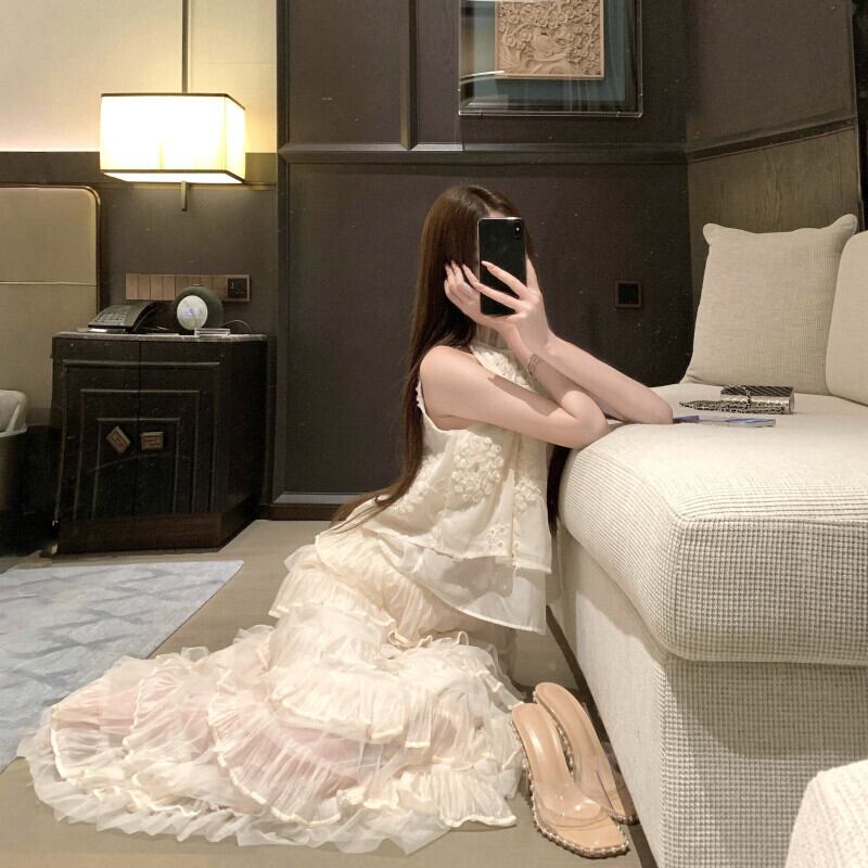 【set】刺繍ノースリーブトップス×スカートセット M31258