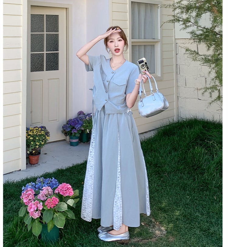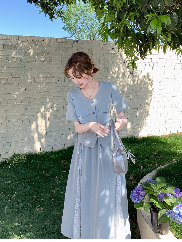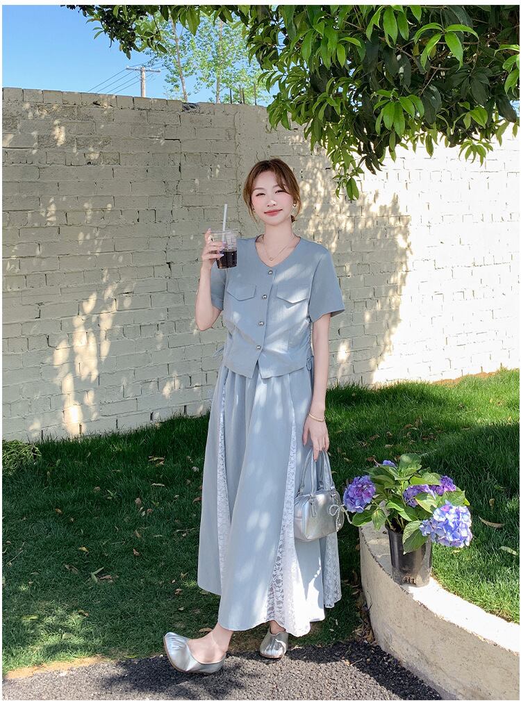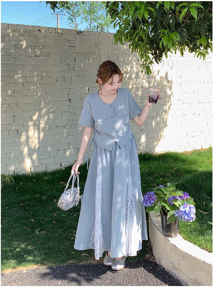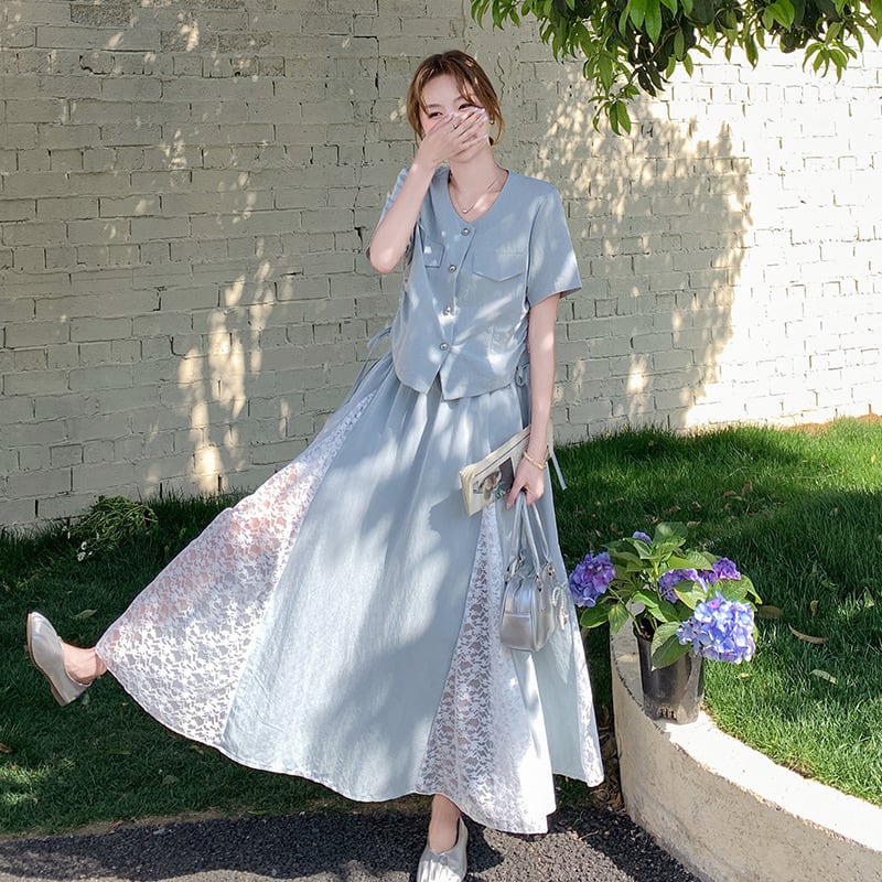 【set】トップス×レースドッキングスカートセット M31294