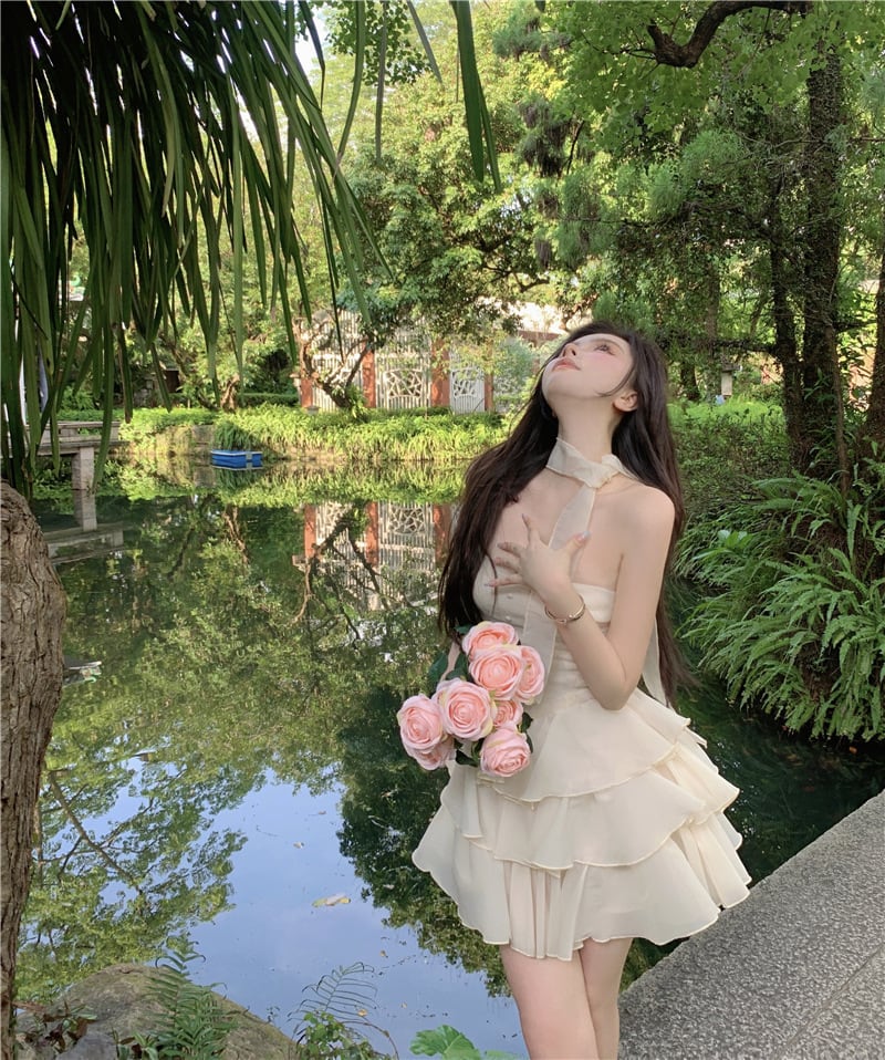 【dress】チュールコンビベアトップフリルワンピース M31384