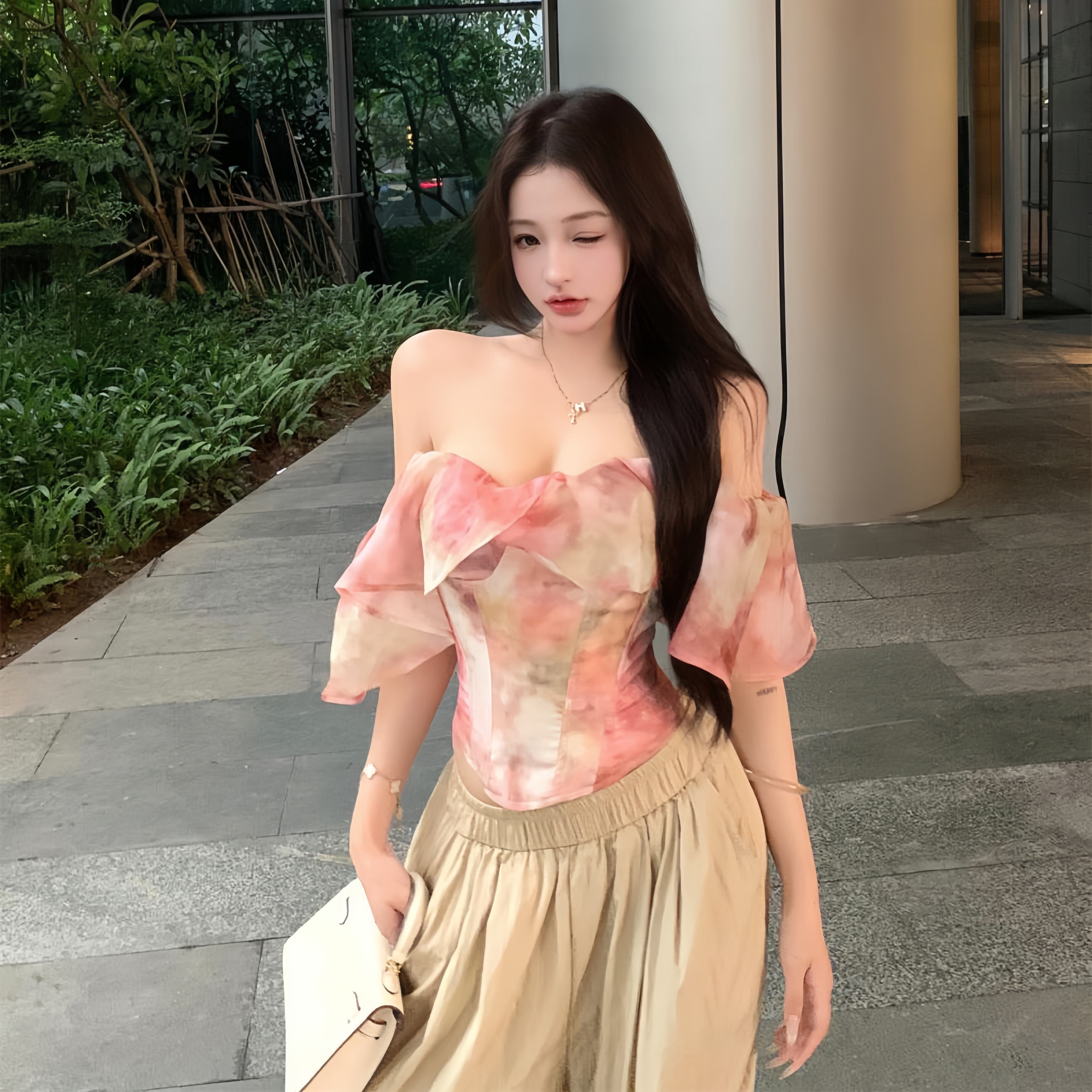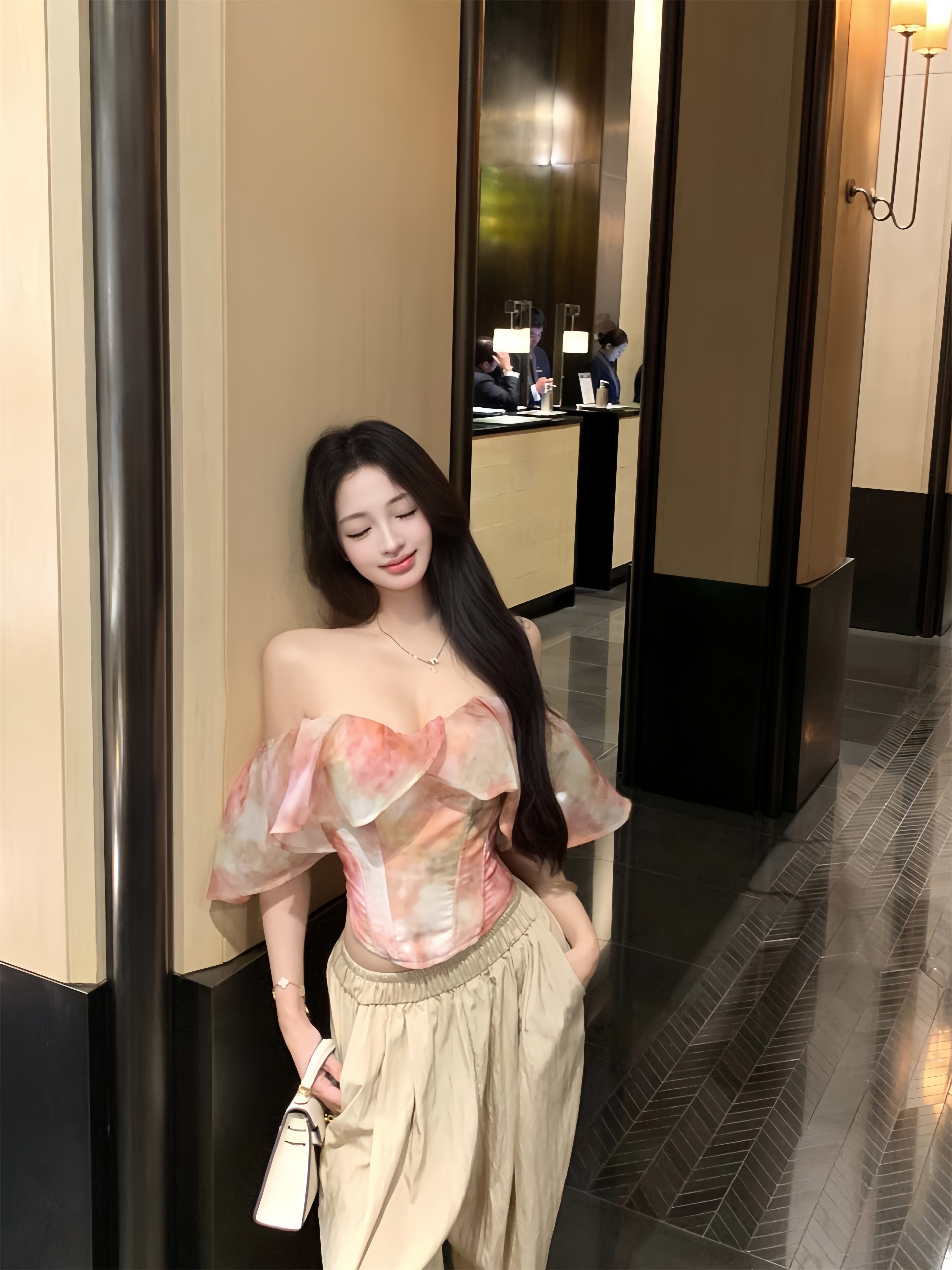 【tops】プリントフリルベアトップトップス M31656