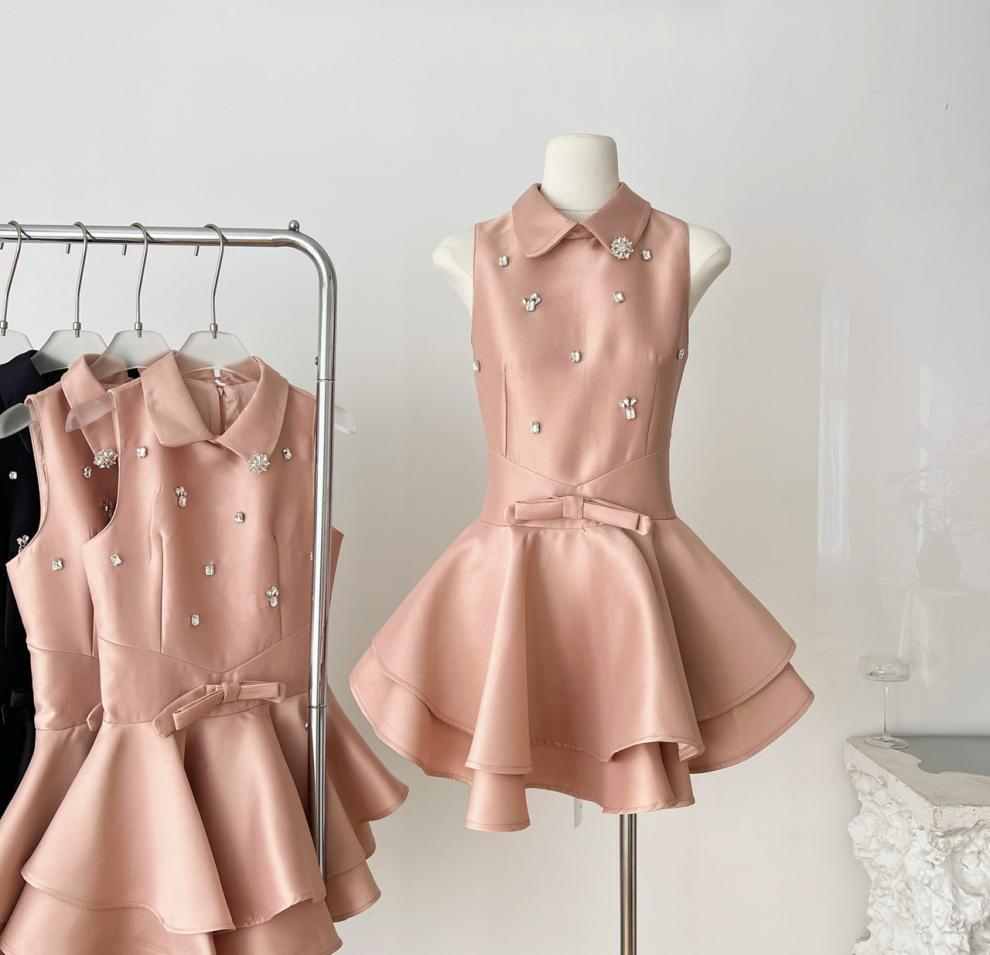 【dress】ノースリーブリボン付きビジューワンピース M31973