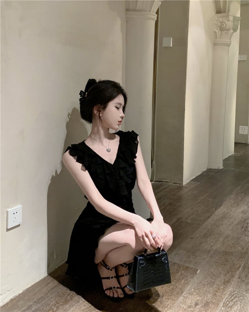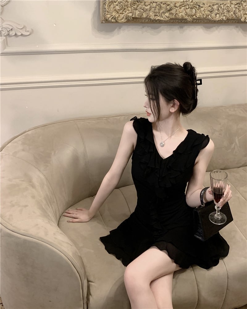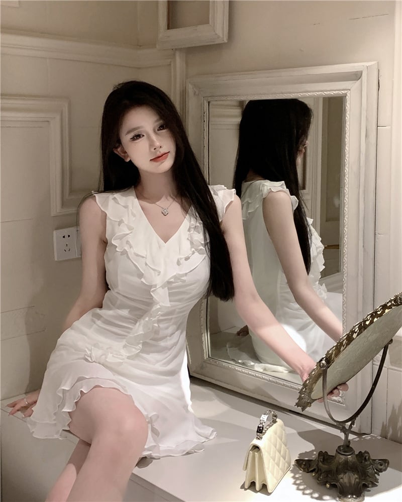 【dress】フリルノースリーブワンピース M32476