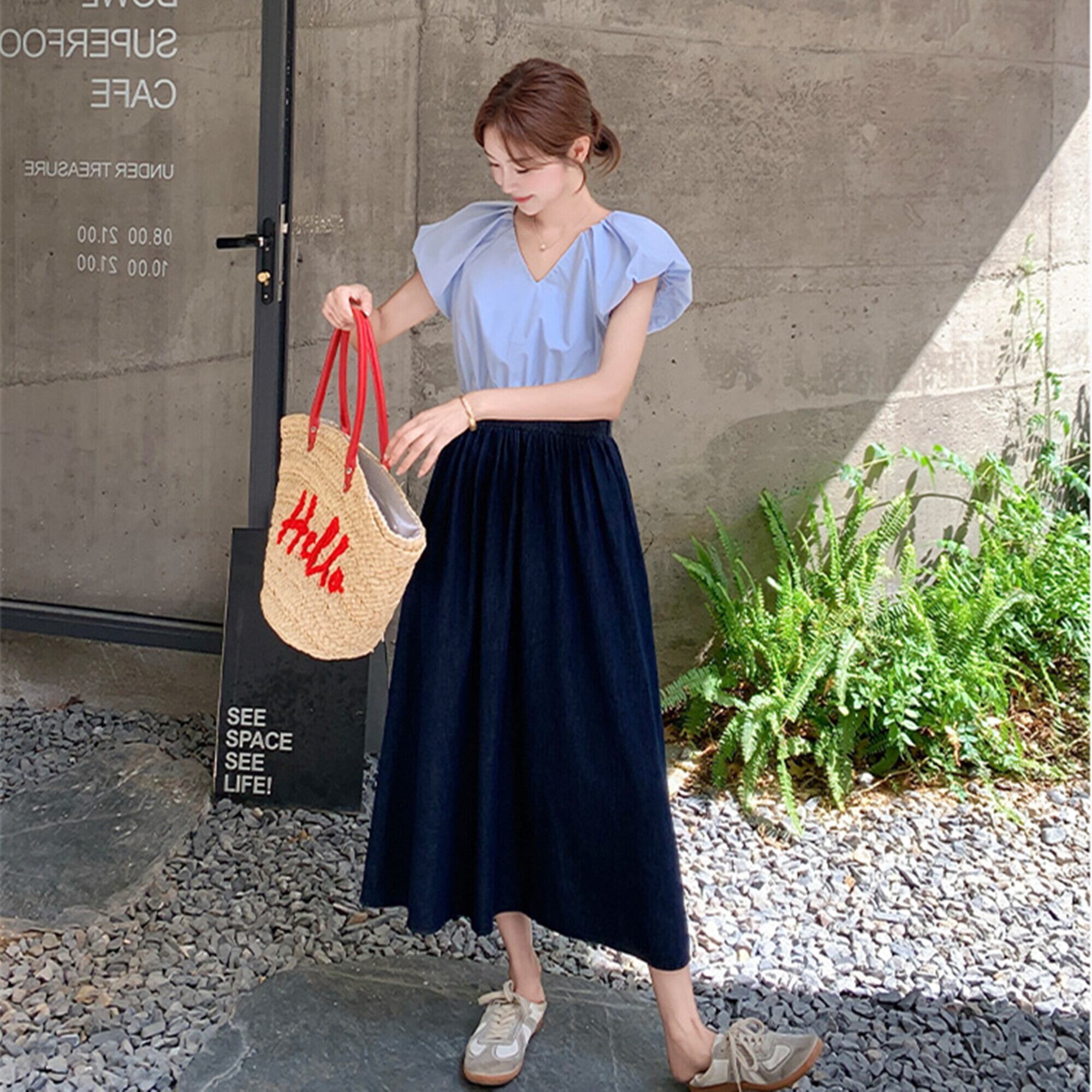 【dress】パフスリーブデニムドッキングワンピース N3251