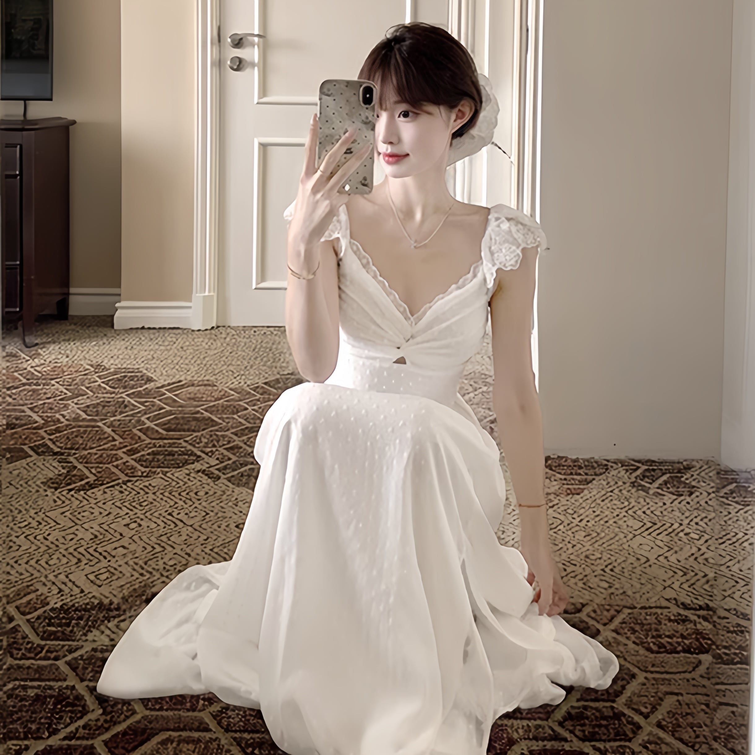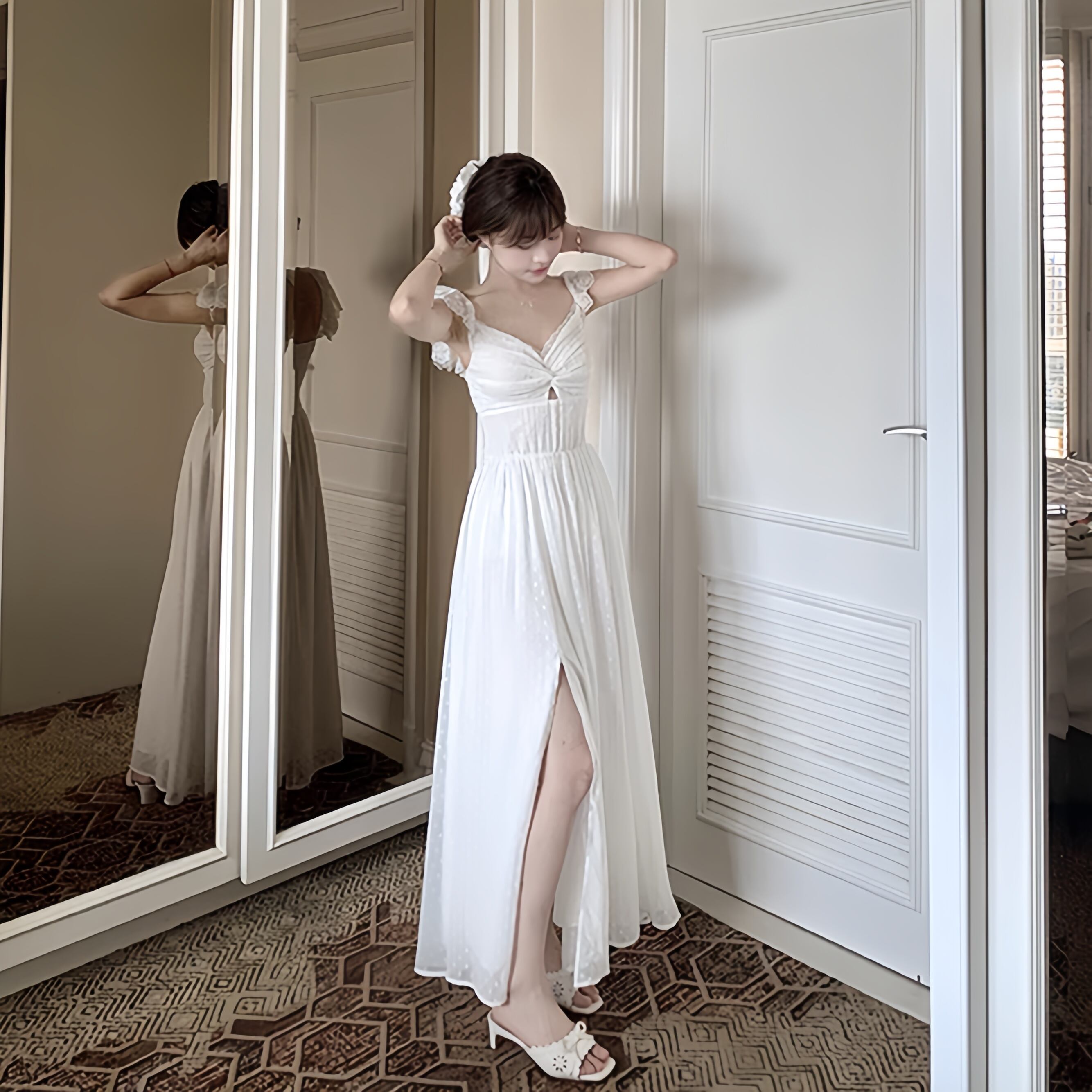 【dress】レースドッキングスリットワンピース M32507