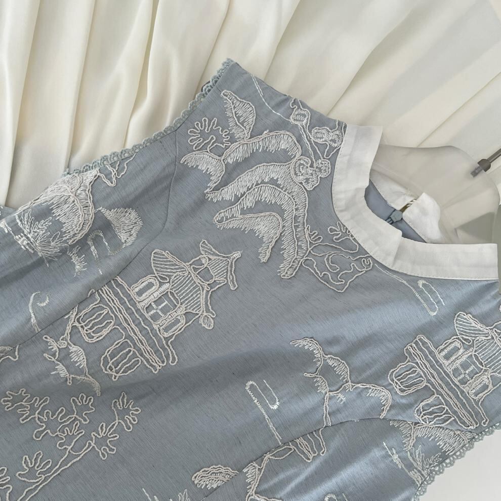 【dress】ジャカードノースリーブドッキングワンピース M32518