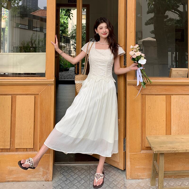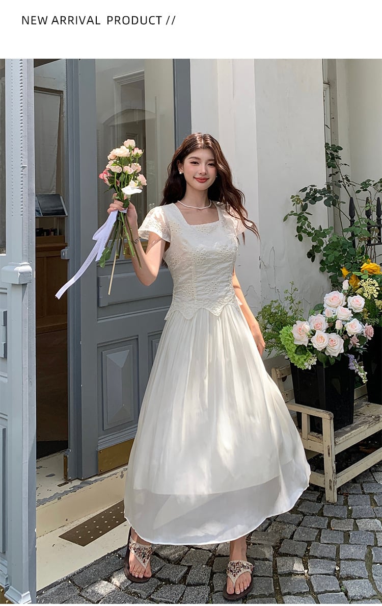 【dress】刺繍ジャカードドッキングワンピース M32528