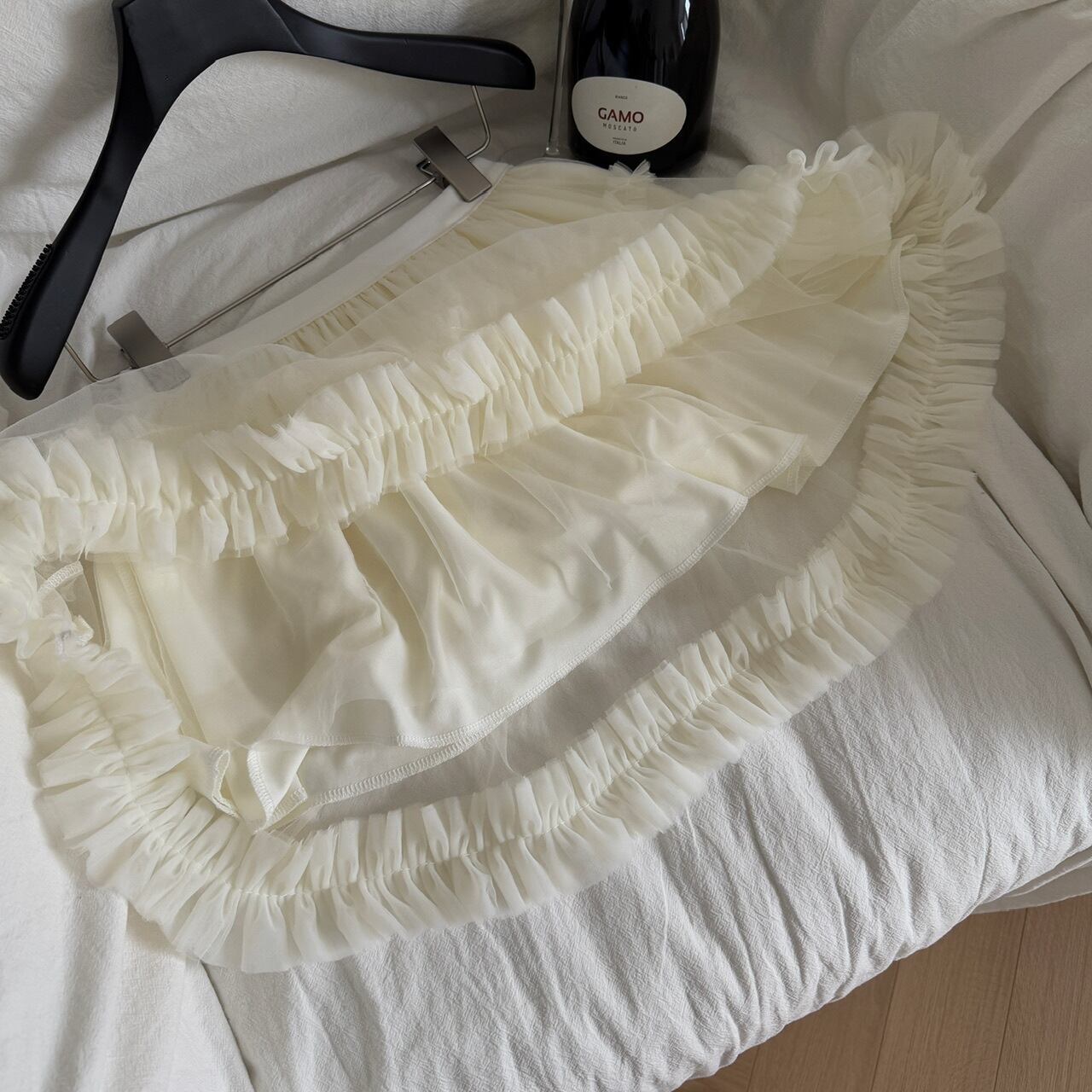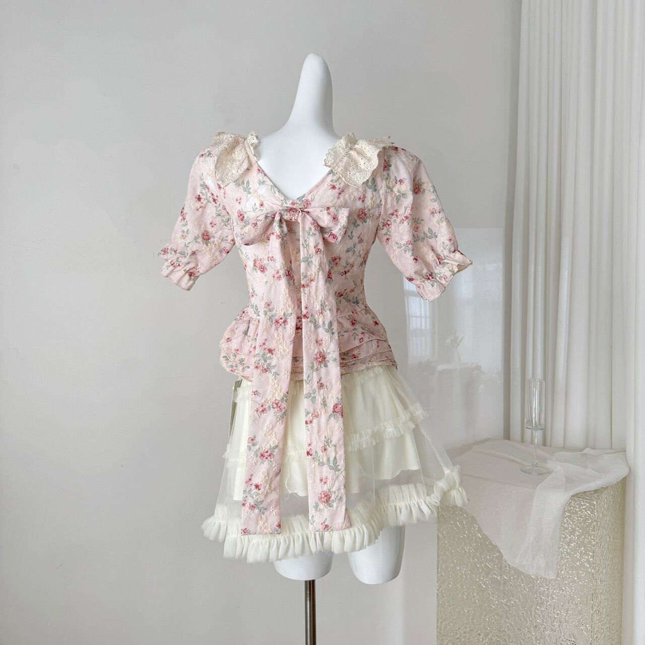 【set】レースドッキング刺繍ブラウス×チュールスカートセット M32531