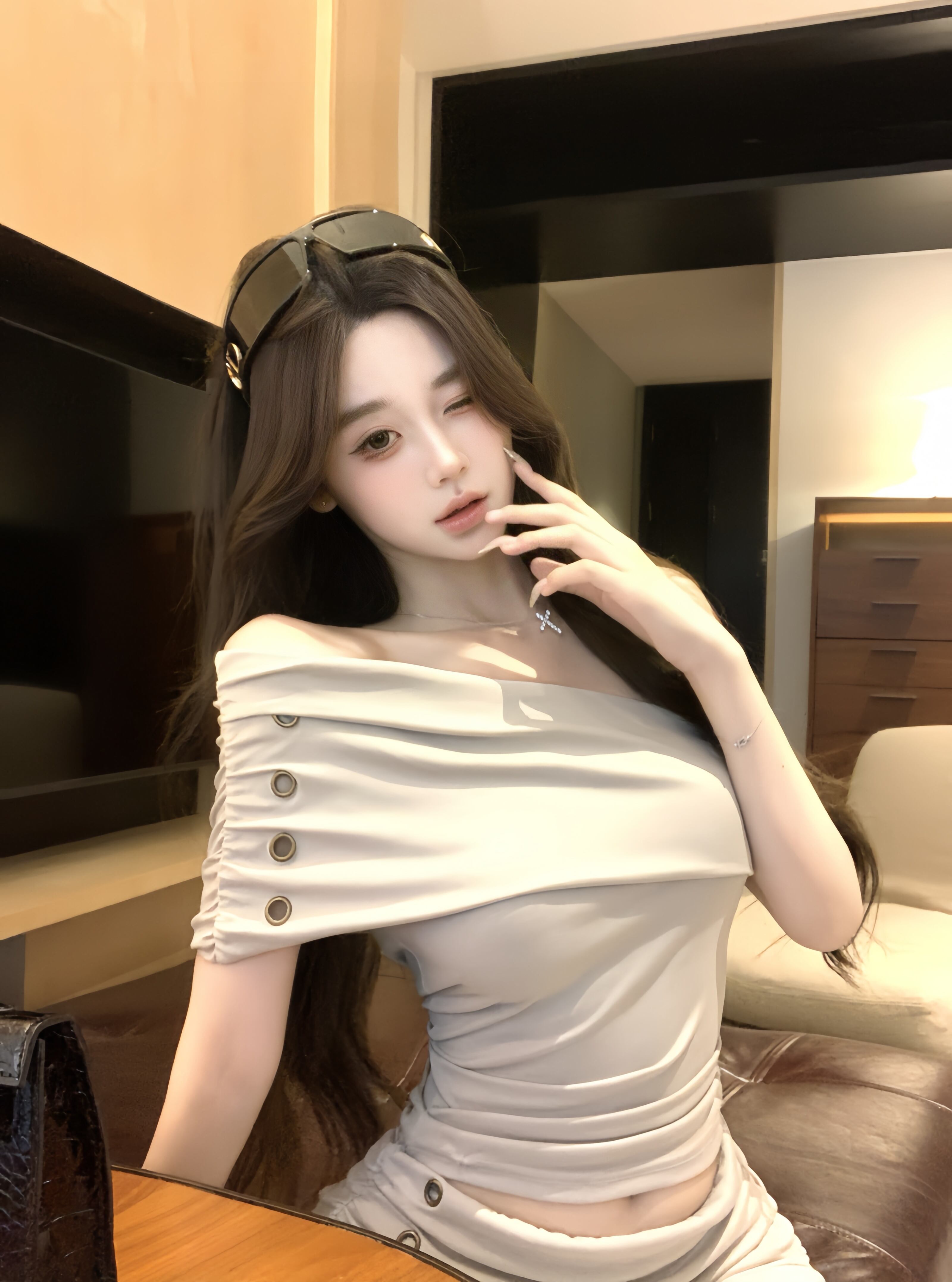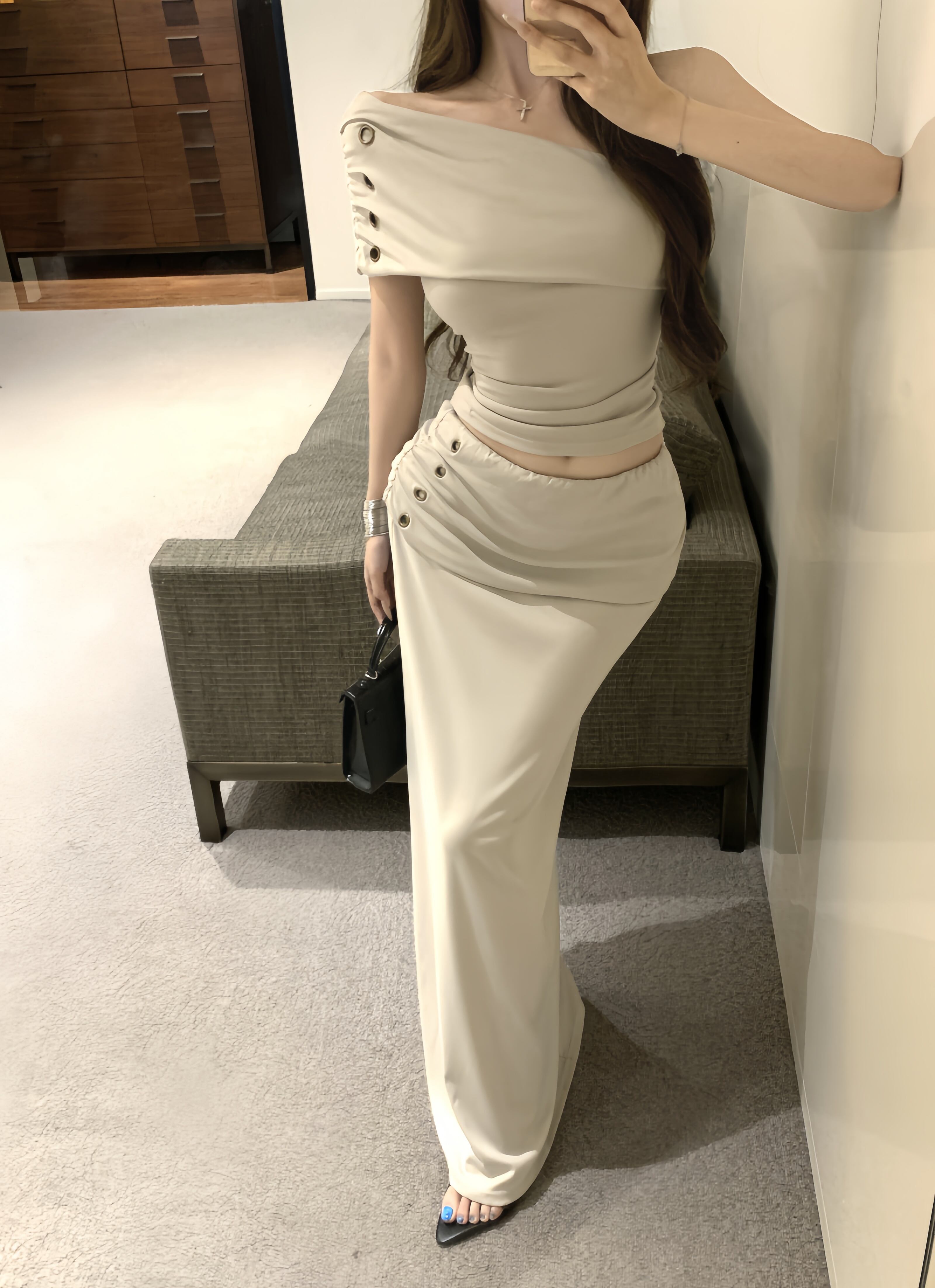 【set】ワンショルダートップス×スカートセット M32610