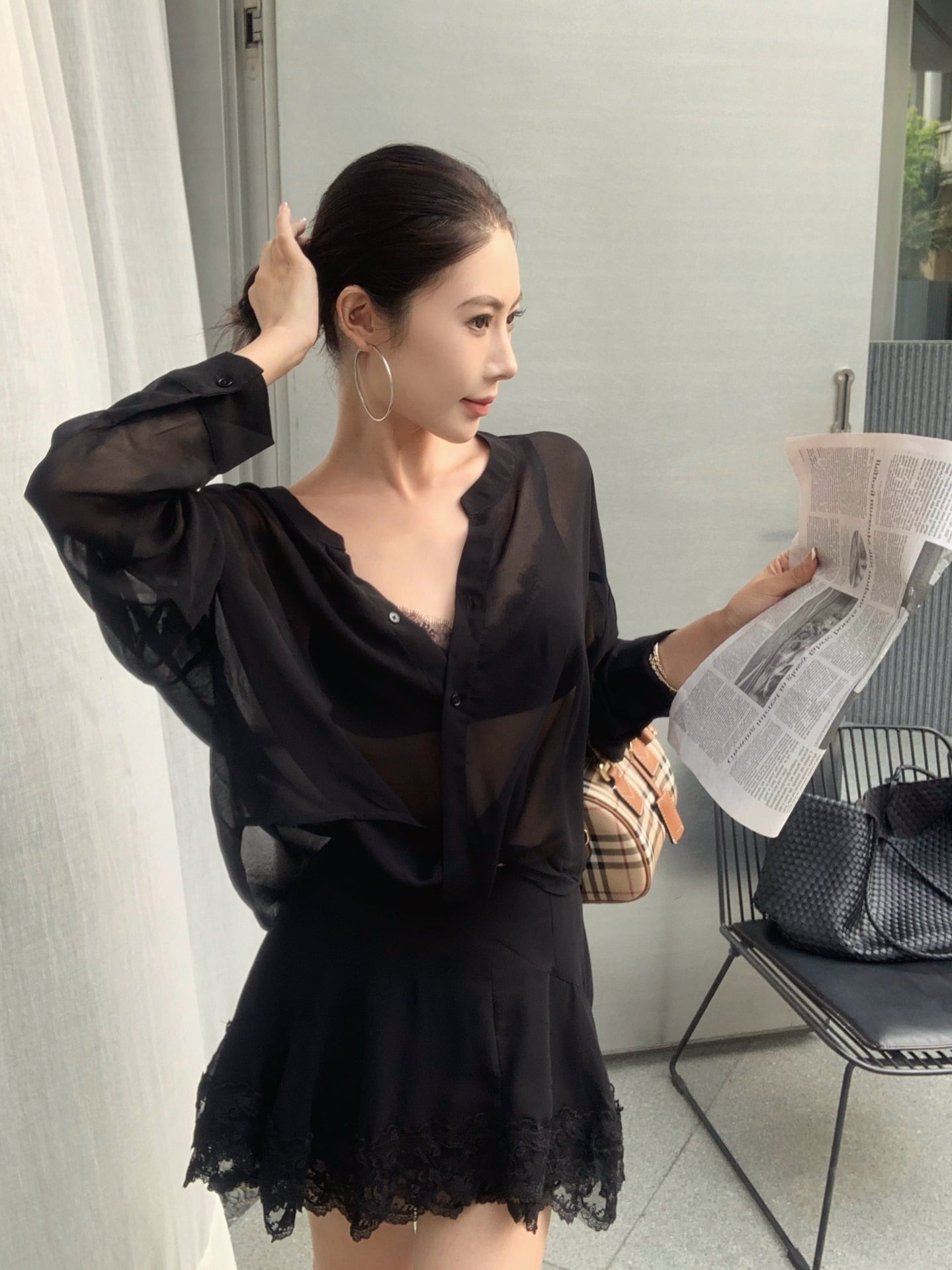【set】レースキャミソール×シャツ×スカートセット M32611