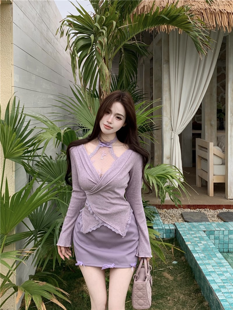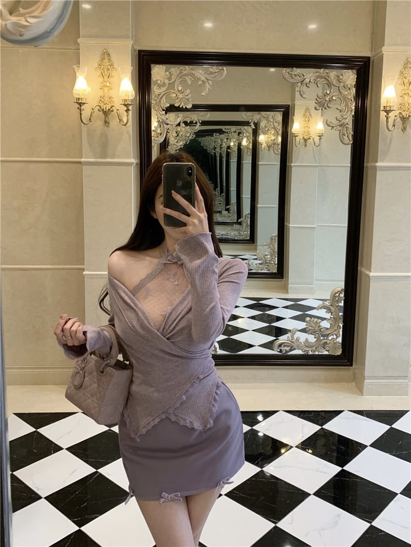 【set】レースドッキングトップス×スカートセット M32651