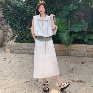 【set】カジュアルノースリーブトップス×ロングスカートセット Q6189