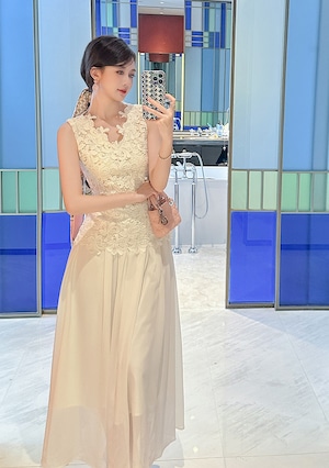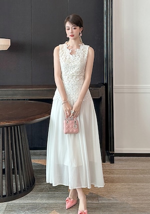 【dress】刺繍ドッキングノースリーブロングワンピース Q6196