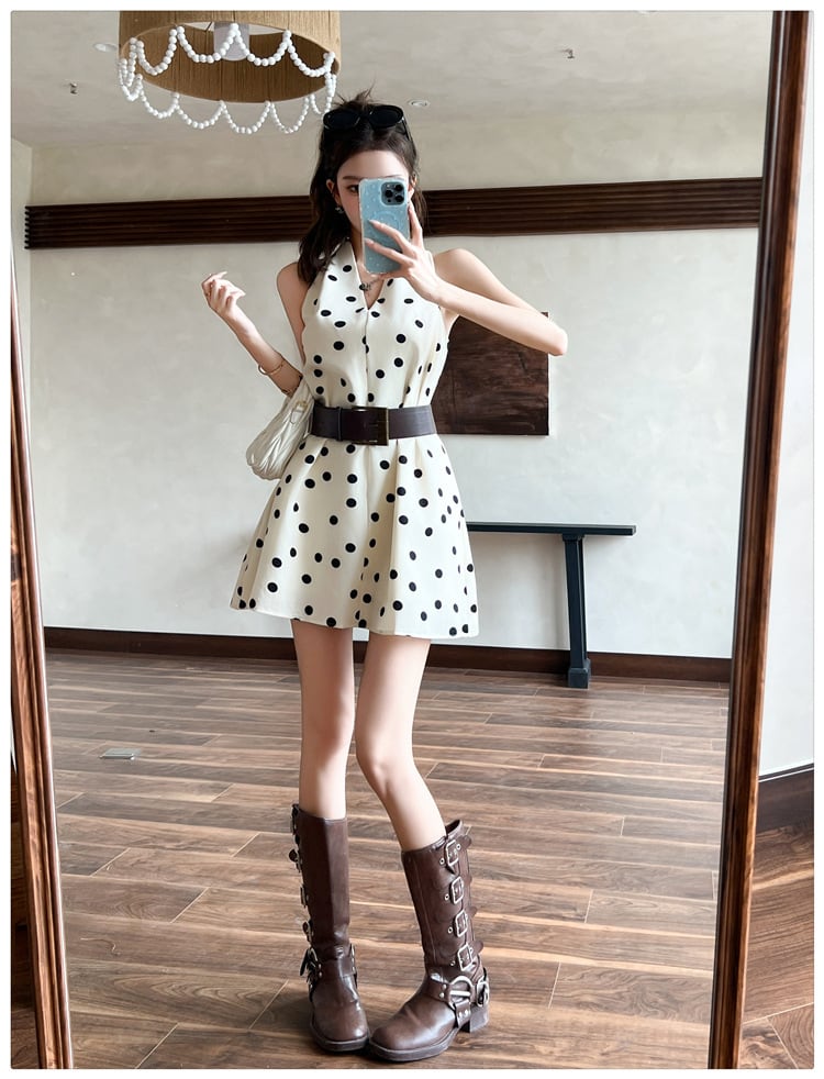 【dress】ドット柄ホルターネックワンピースベルト付き M32729