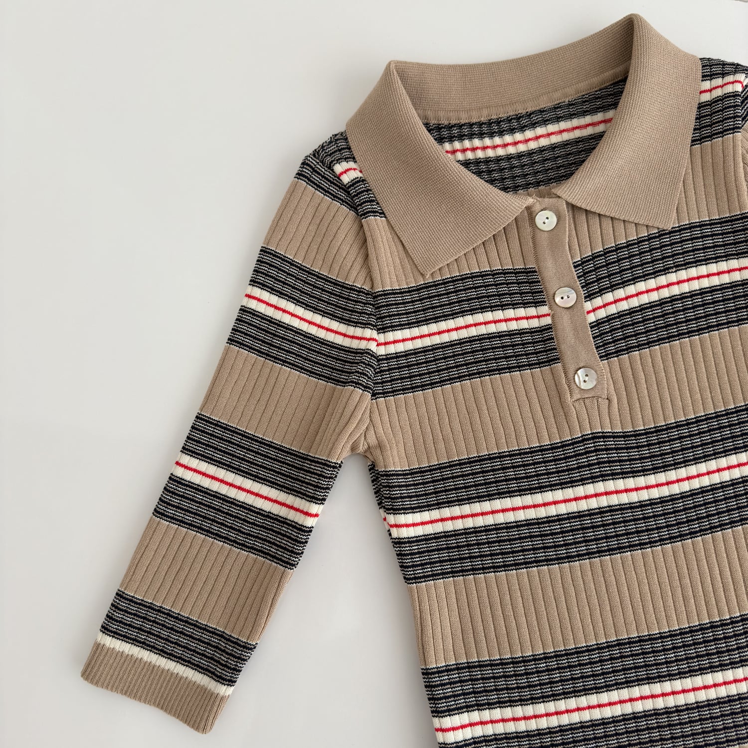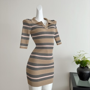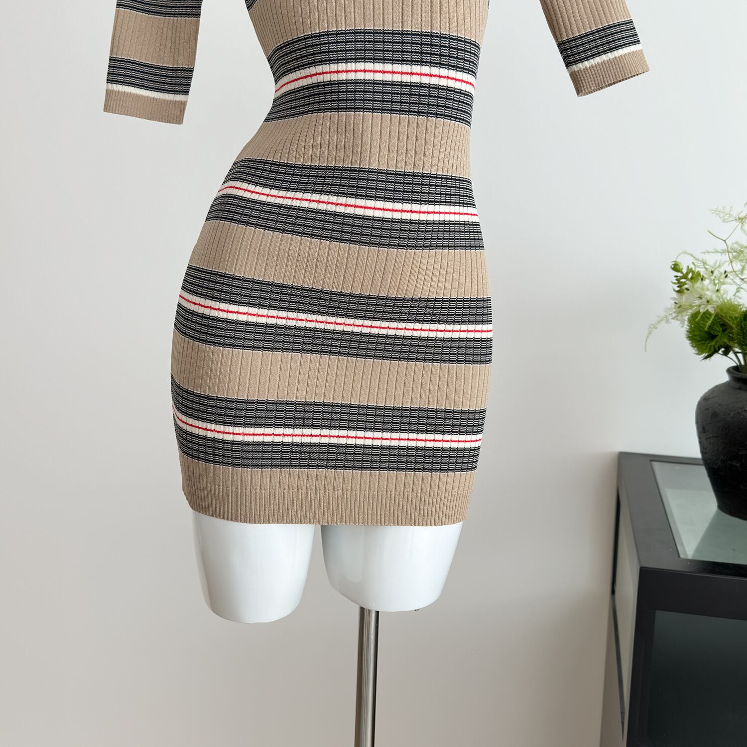 【dress】ボーダー柄POLOネックニットワンピース M32787