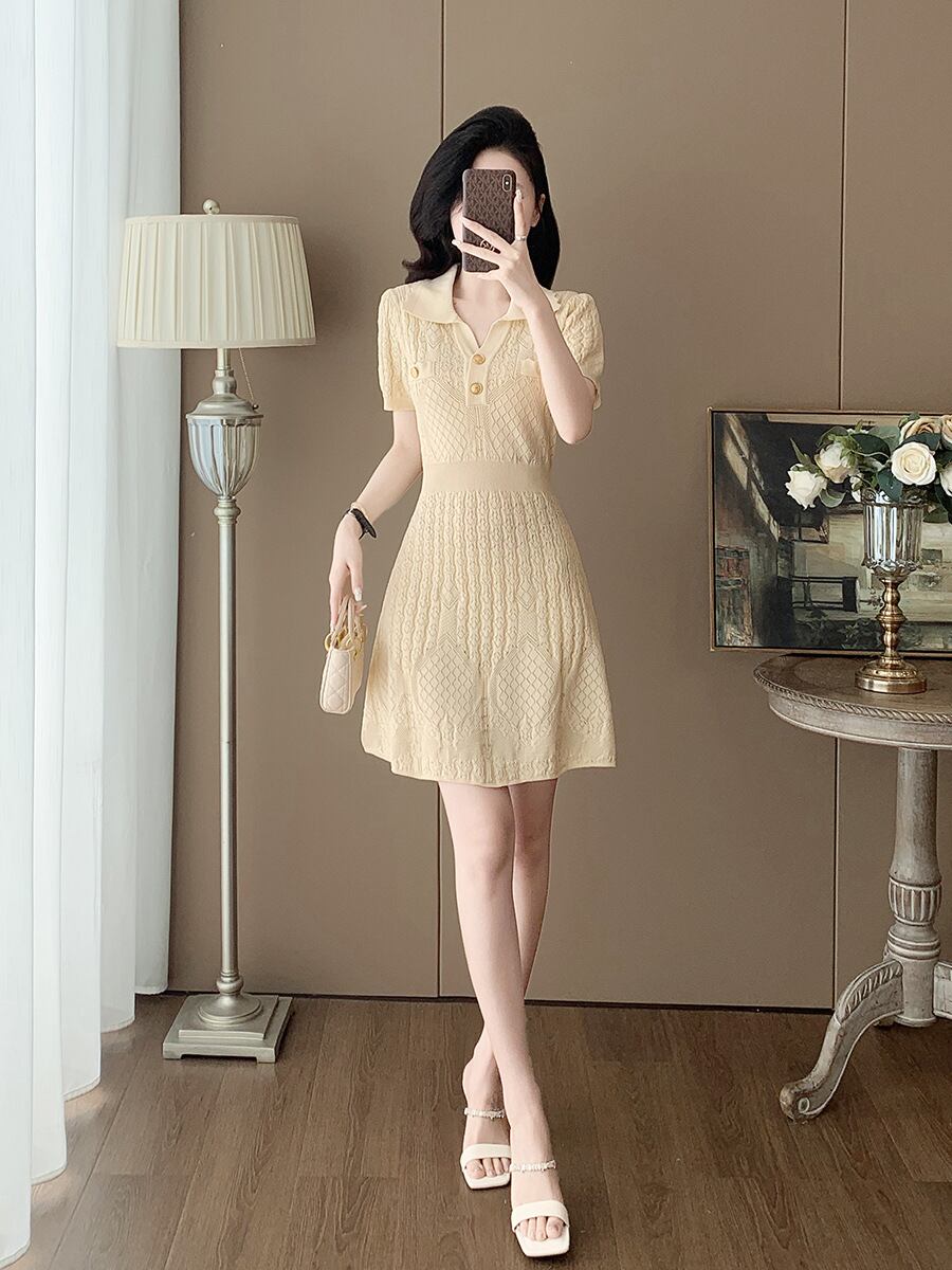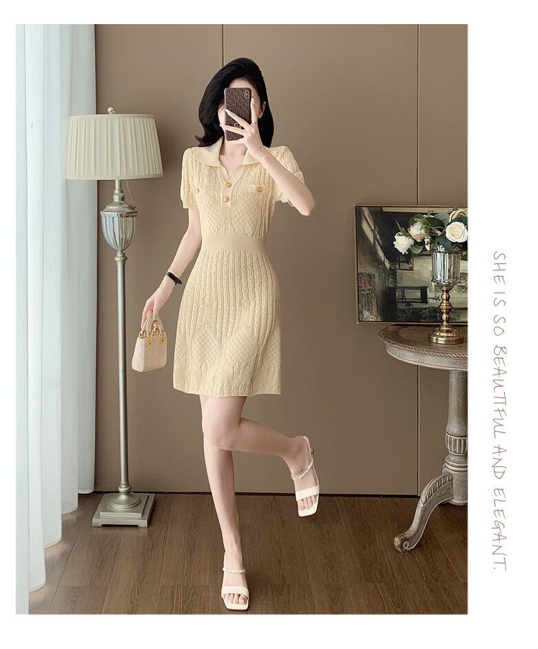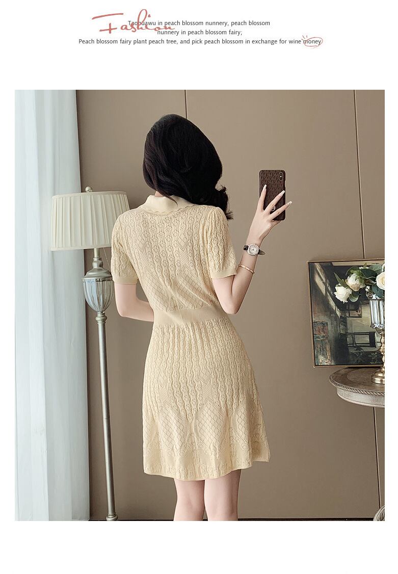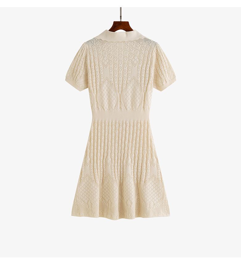 【dress】折り襟ニットカットワークワンピース M32826