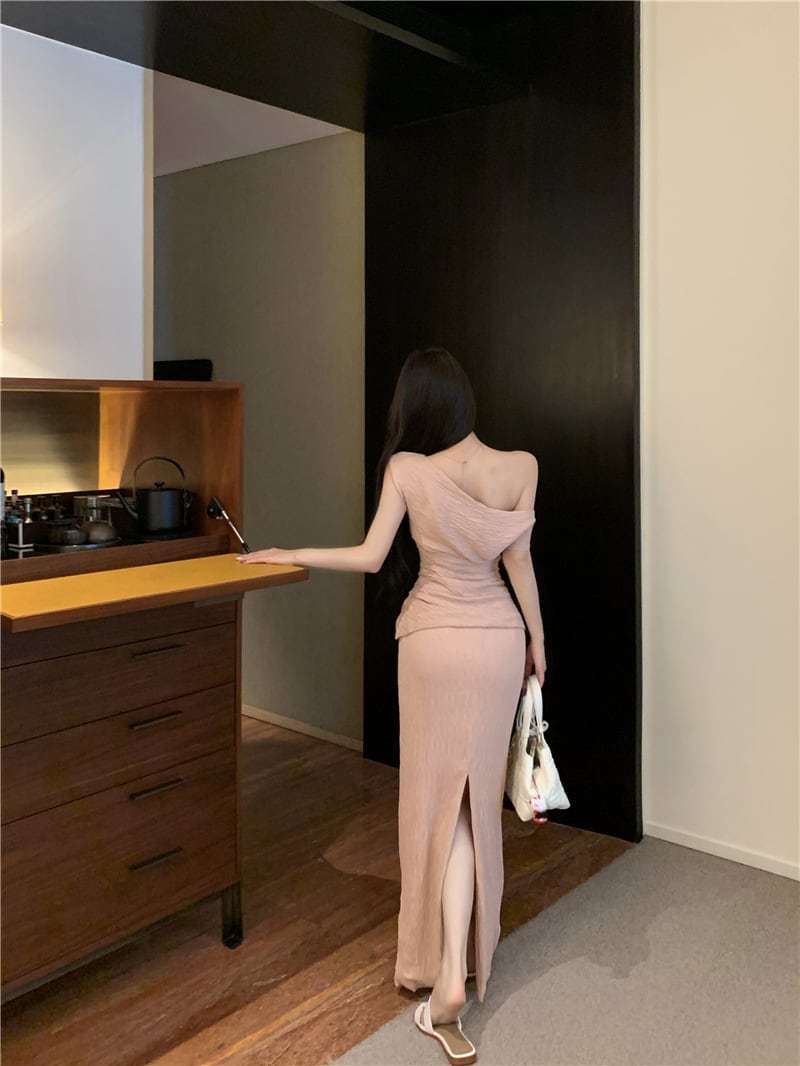 【set】ワンショルダートップス×ロングスカートセット M32871