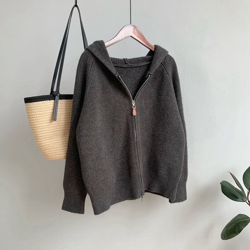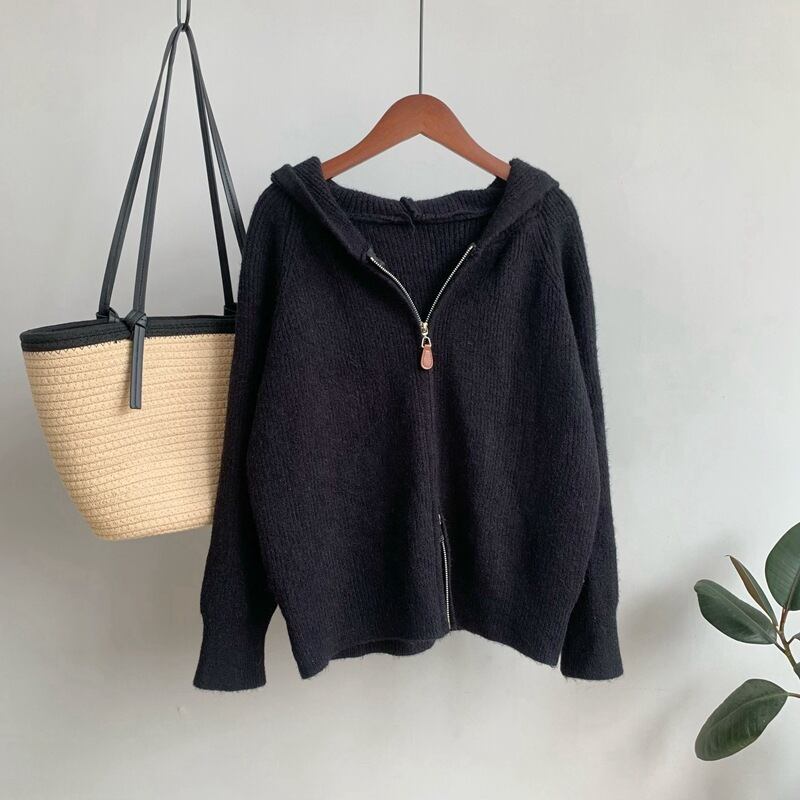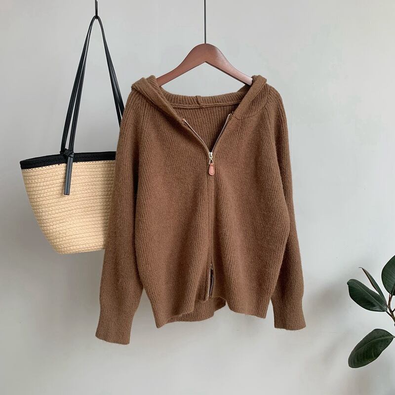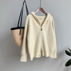 【outer】ファスナーフード付きニットカーデ M32891