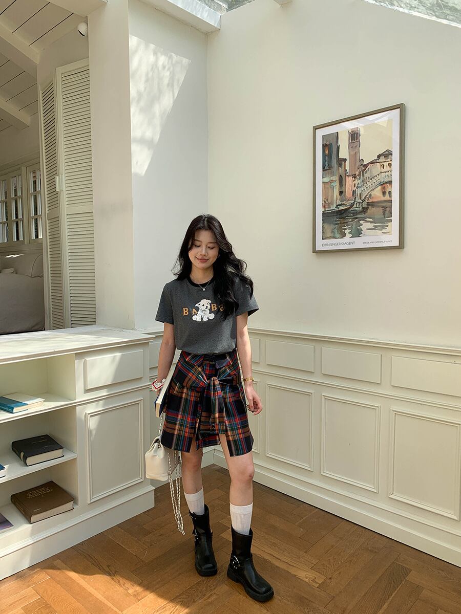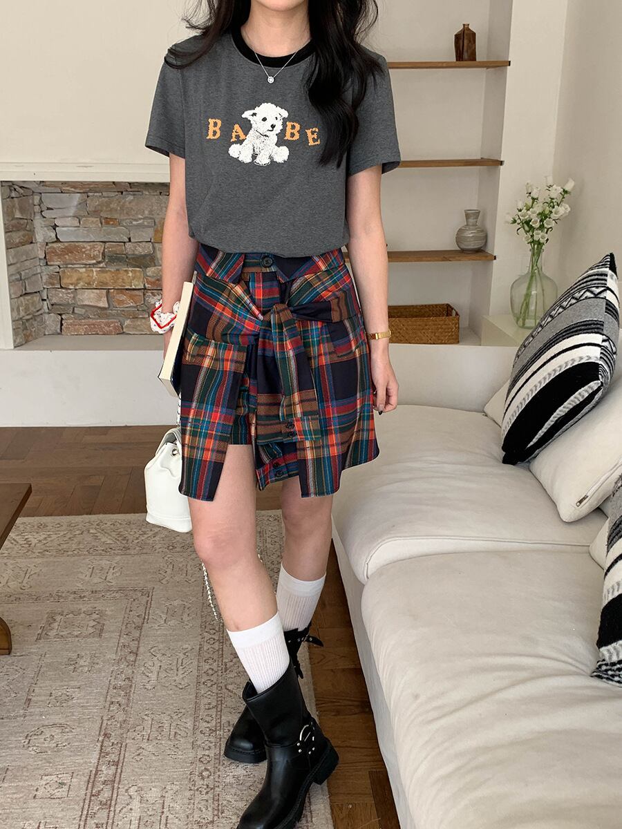 【set】プリントTシャツ×チェック柄スカートセット M32947
