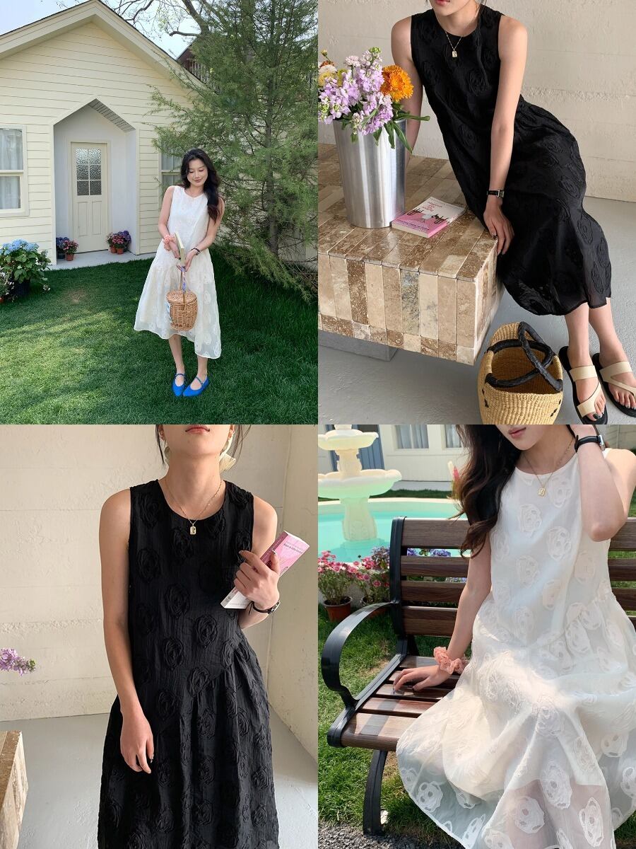【dress】刺繍ジャカードノースリーブワンピース M32948
