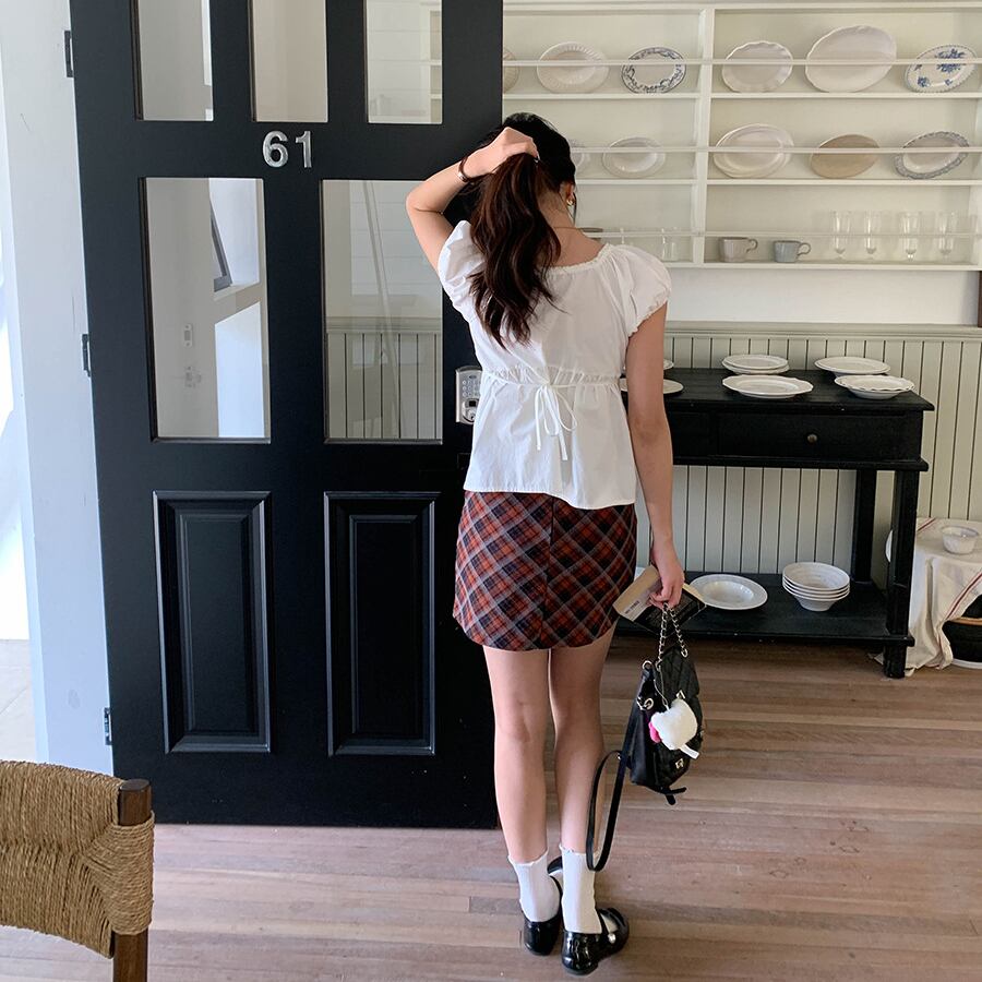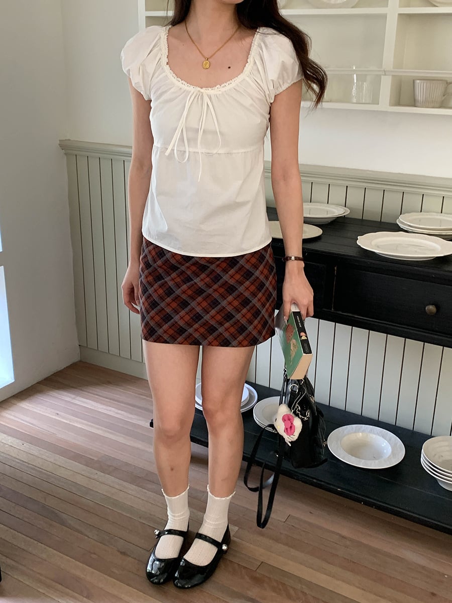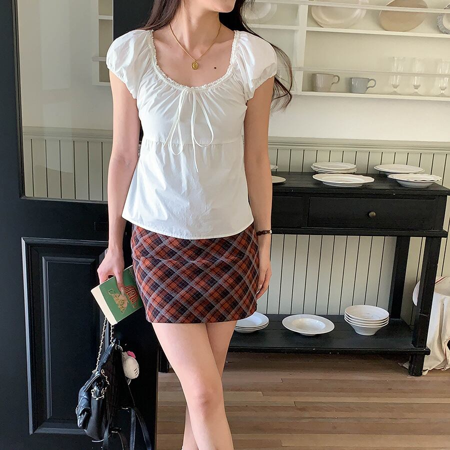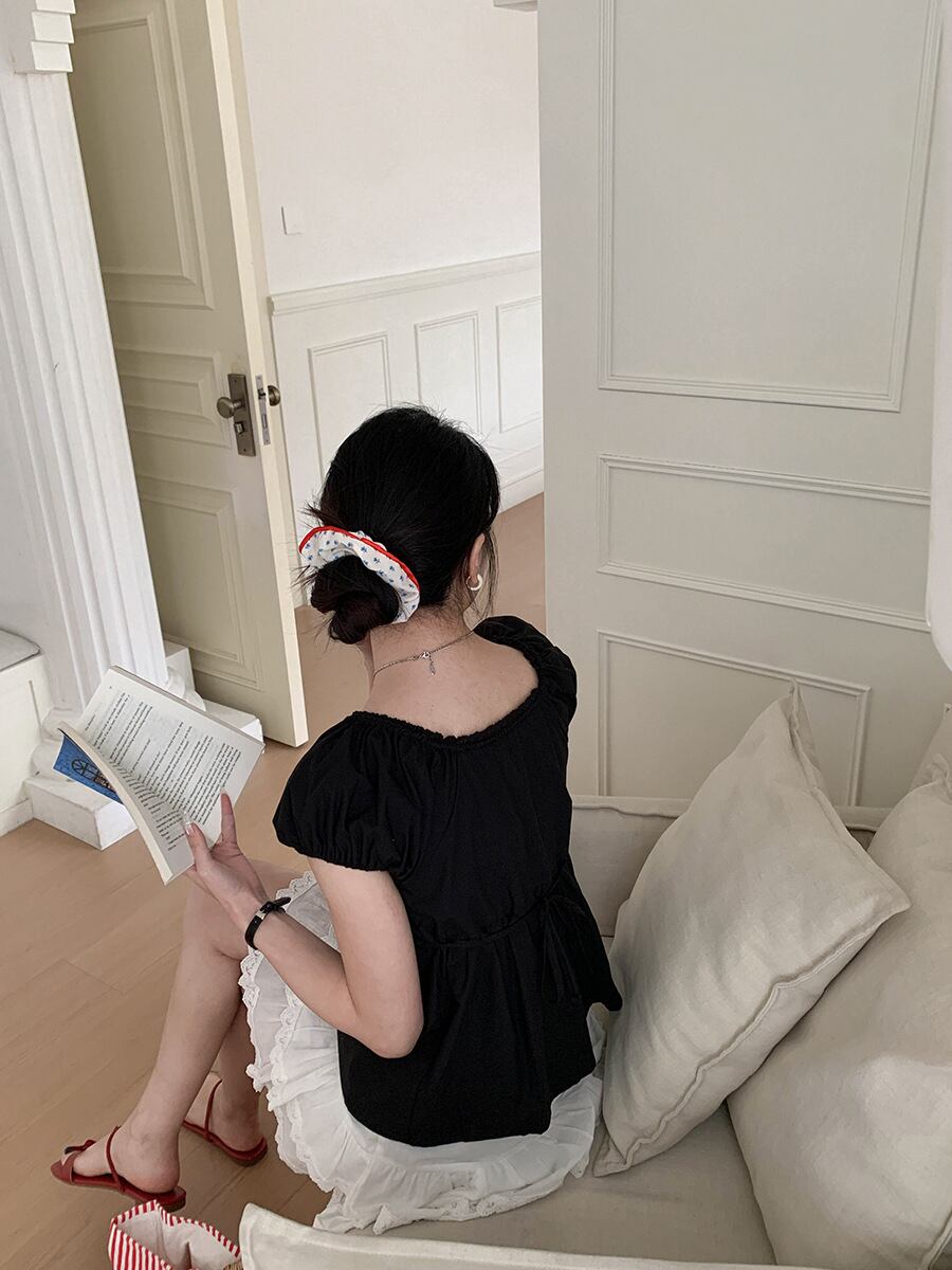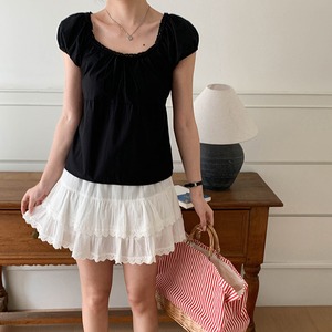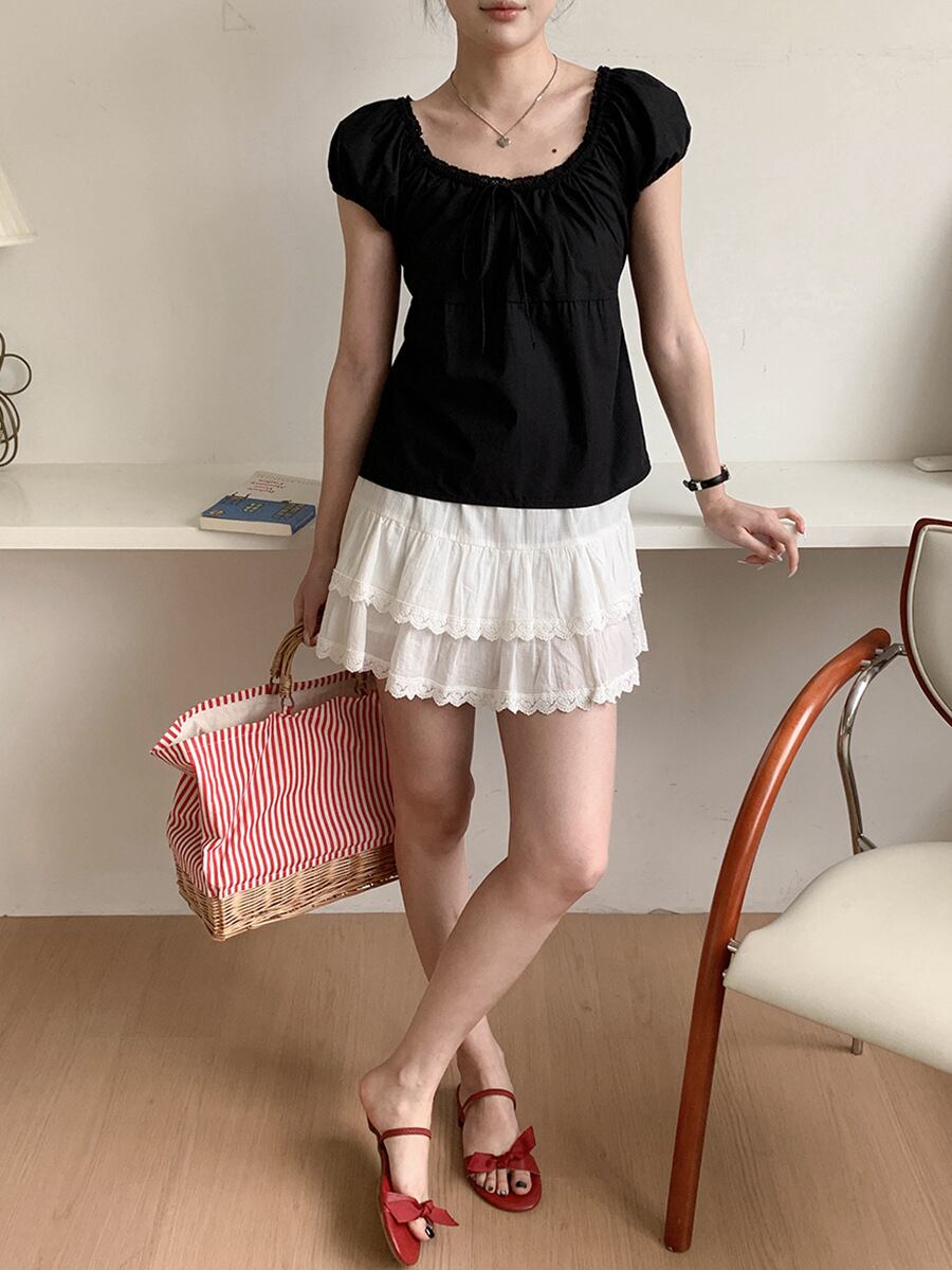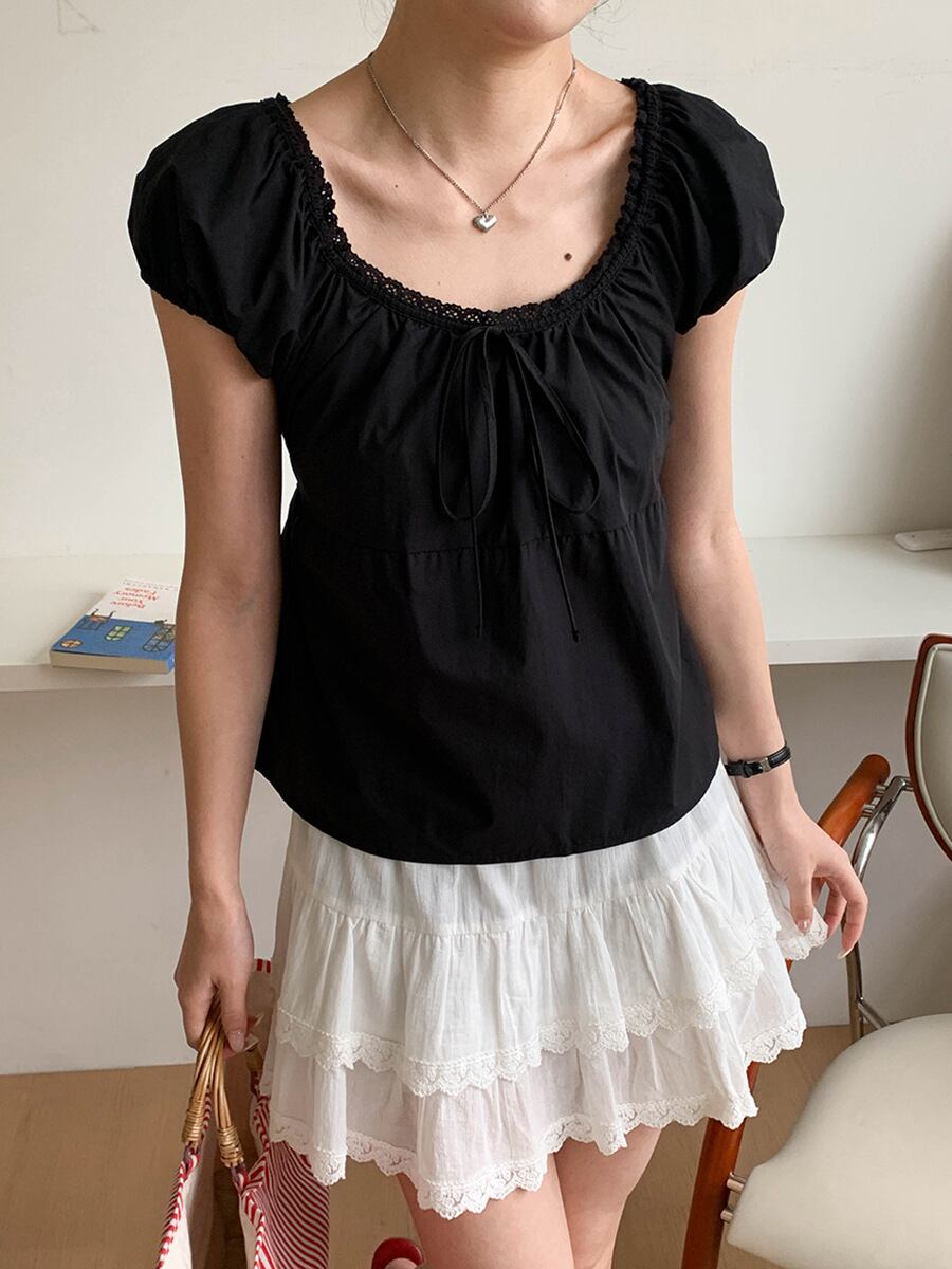 【tops】レースドッキングパフスリーブトップス M32969