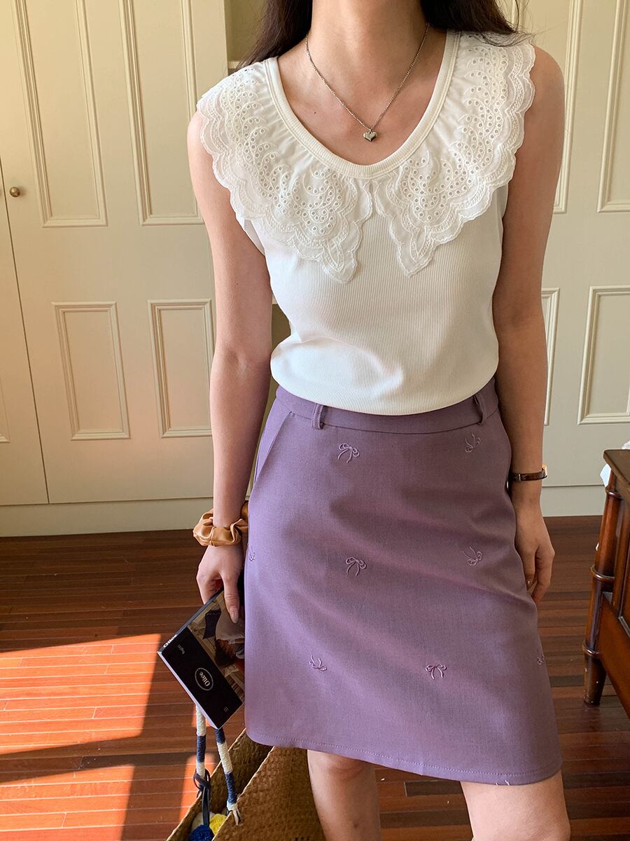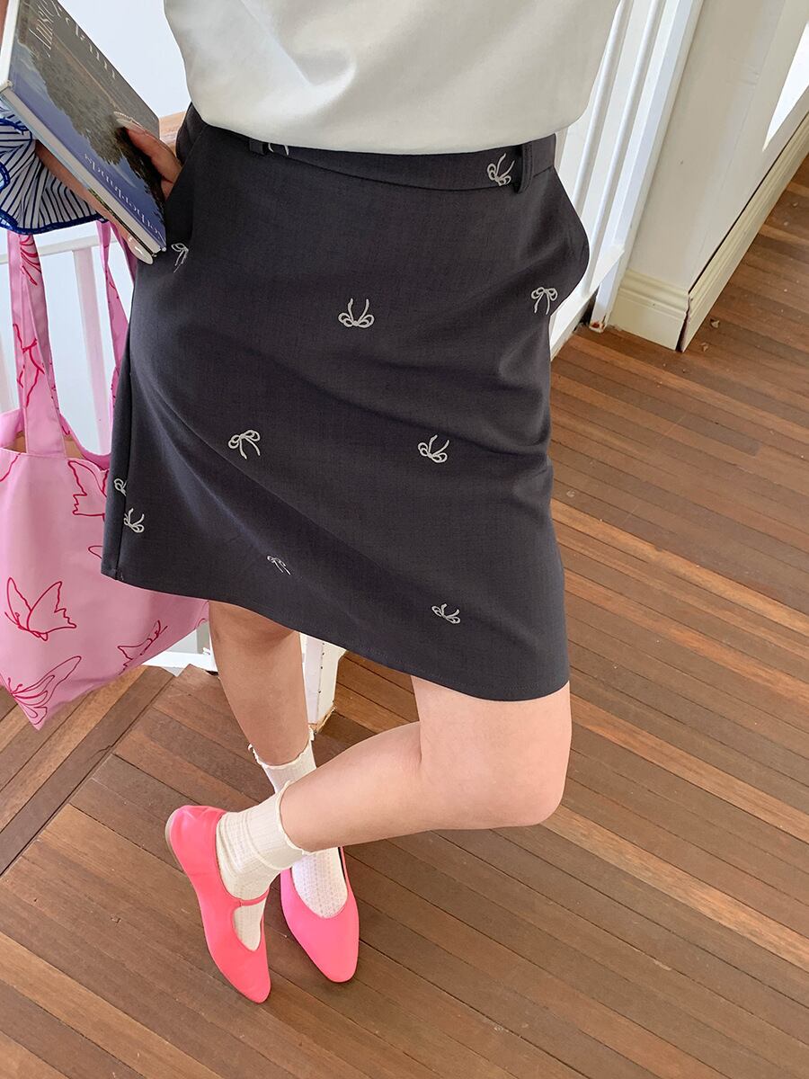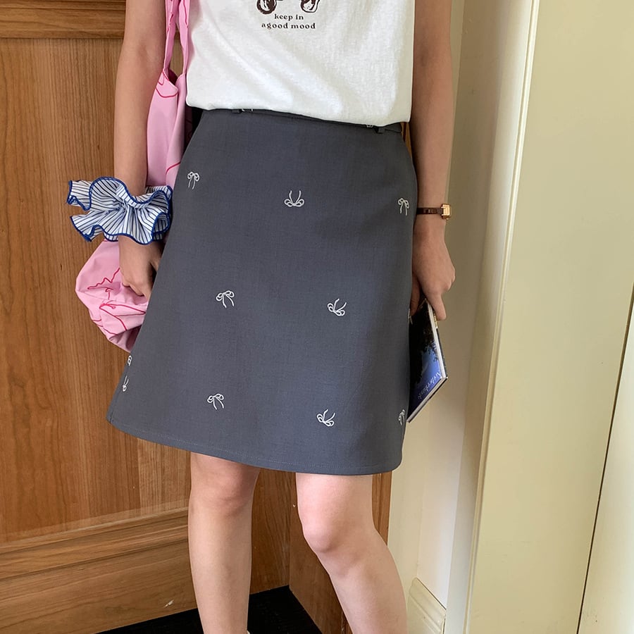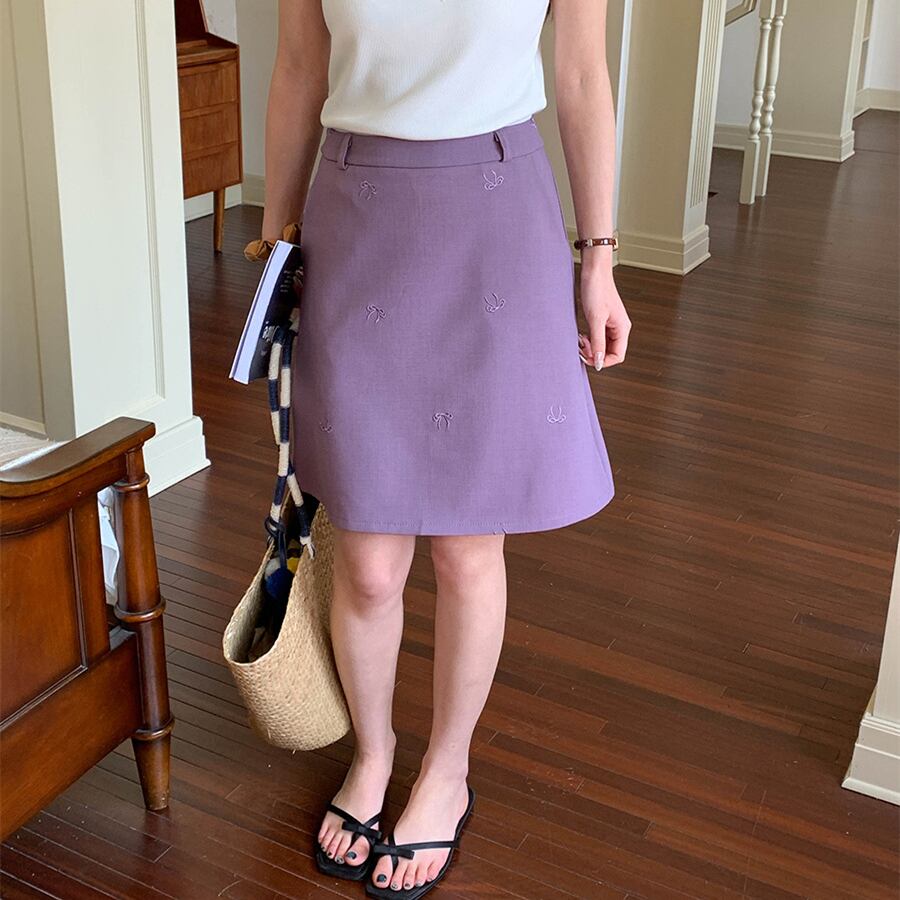 【bottoms】リボン刺繍スカート M32976