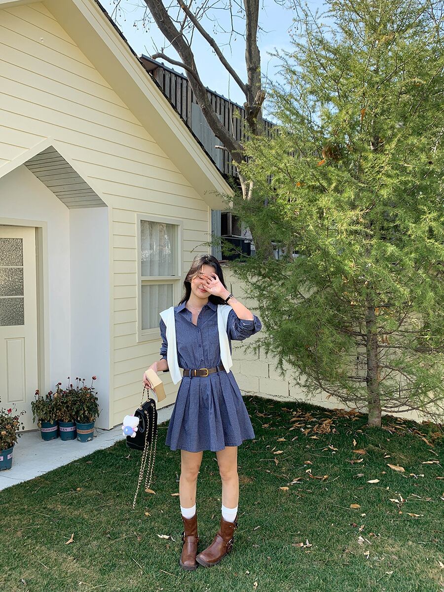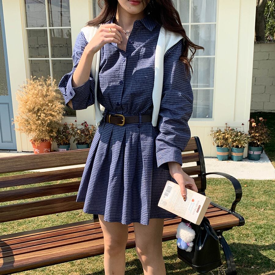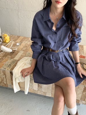 【dress】ベルト付きチェック柄シャツワンピース M32980