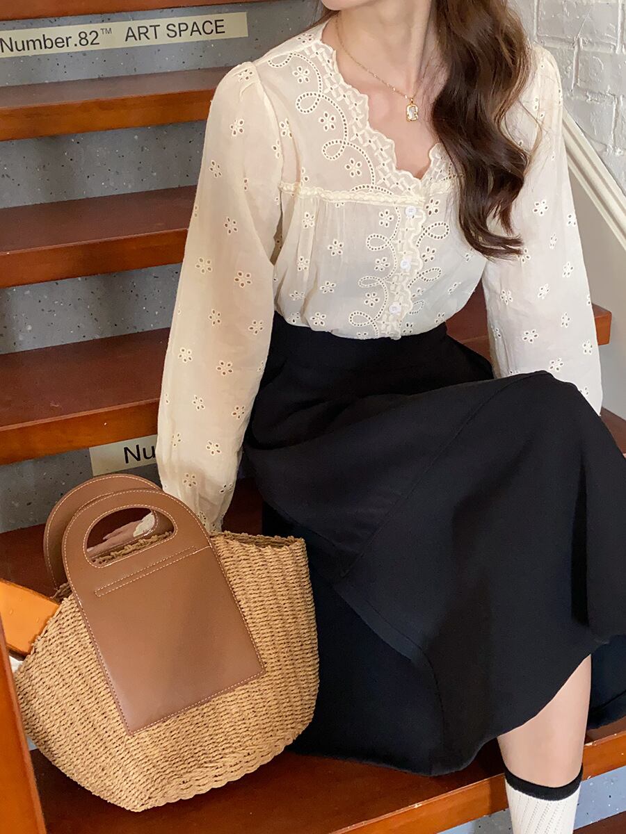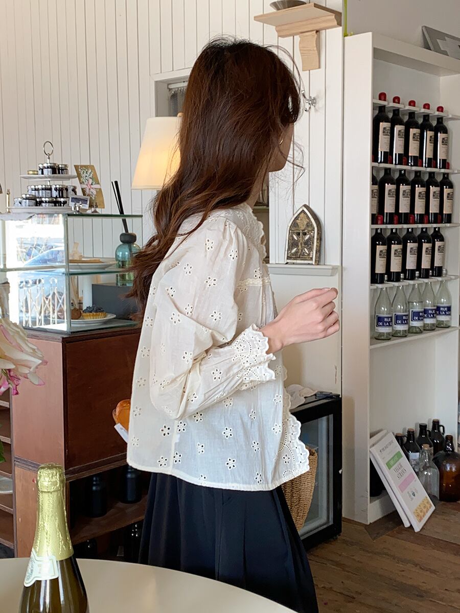 【tops】カットワークパフスリーブブラウス M33081