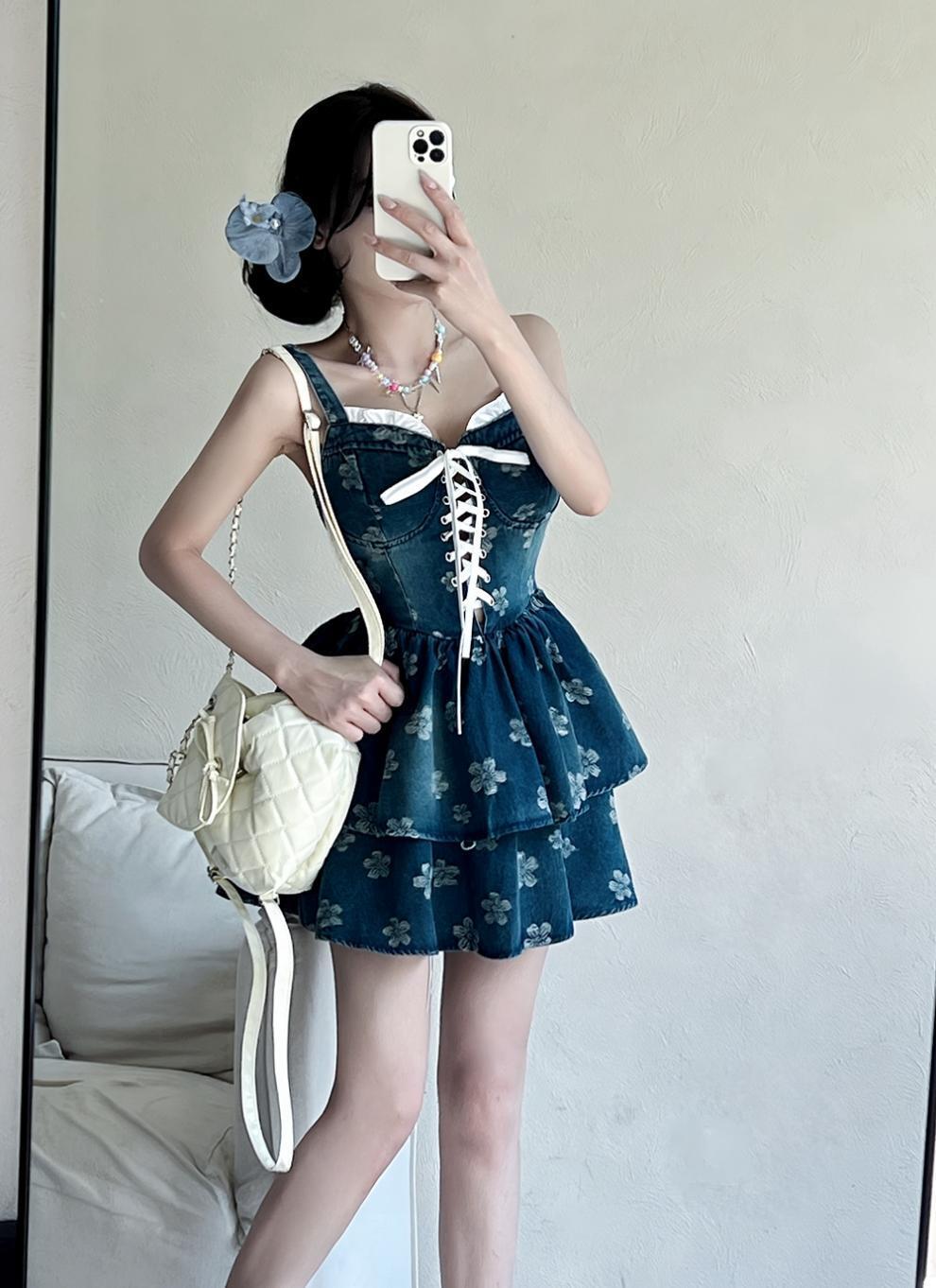 【dress】プリントデニムキャミワンピース M33148