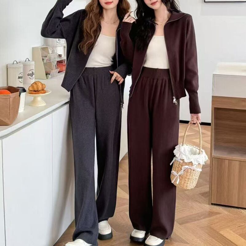 【set】カジュアルニットブラウス×ニットパンツセット Q6240