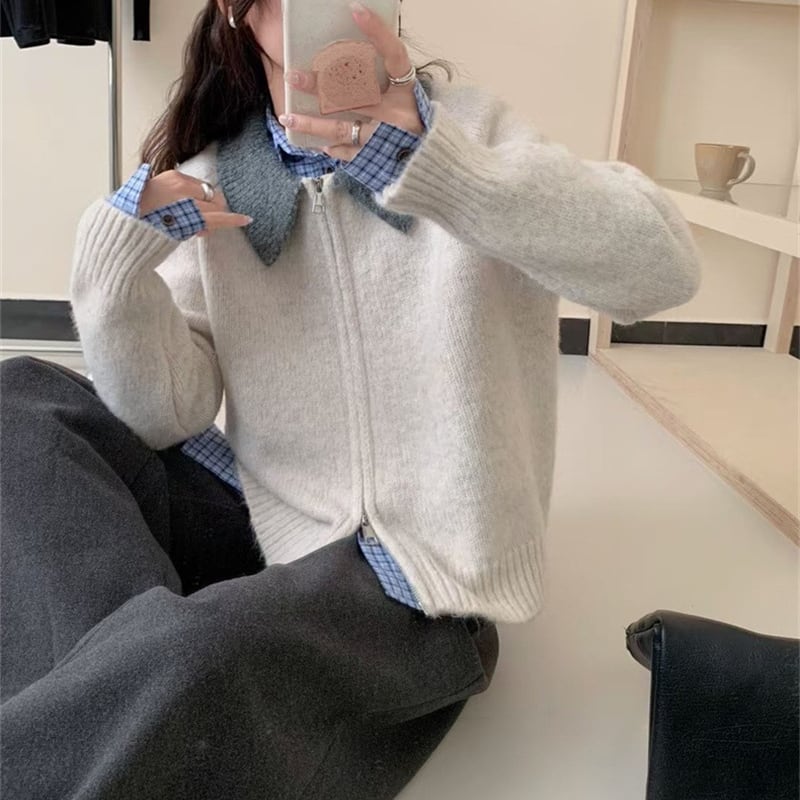 【tops】ドッキングニットカーディガン Q6242