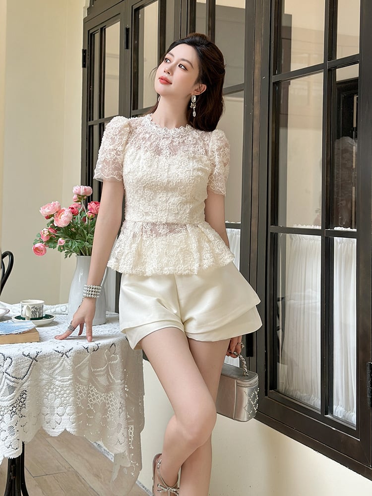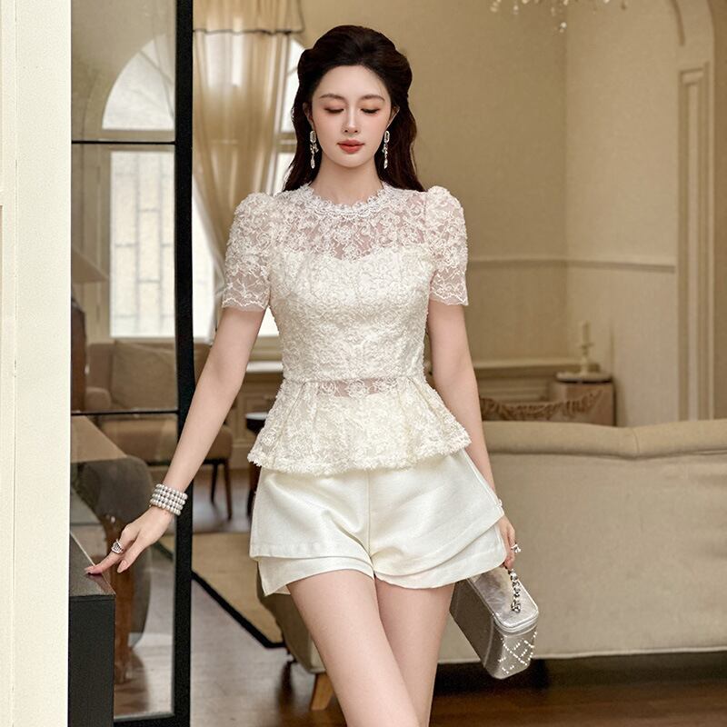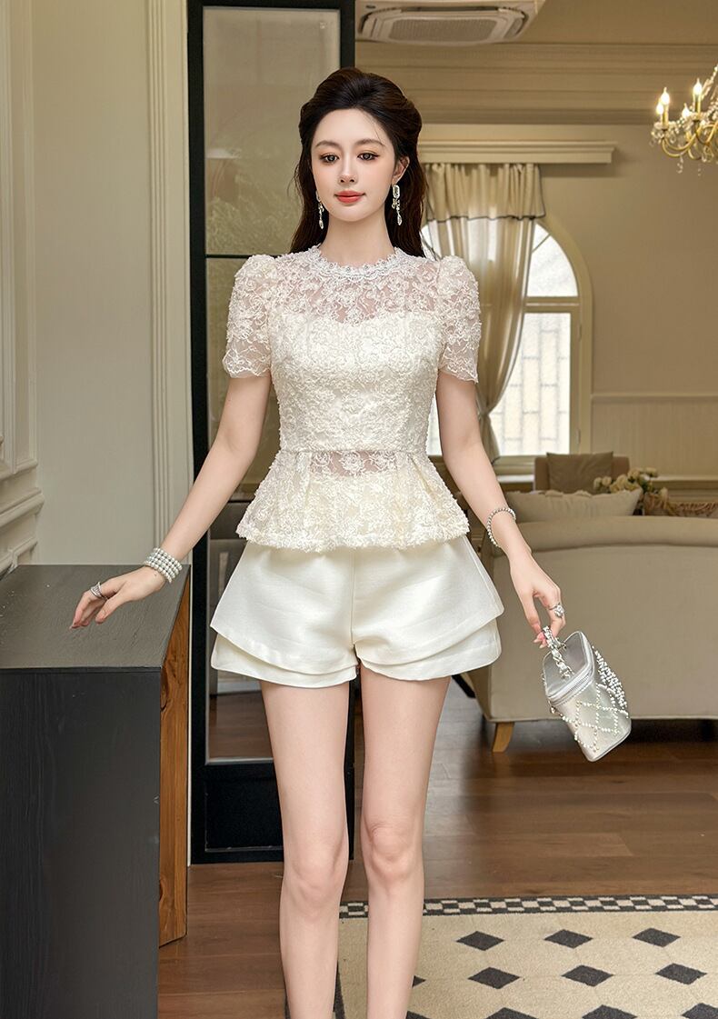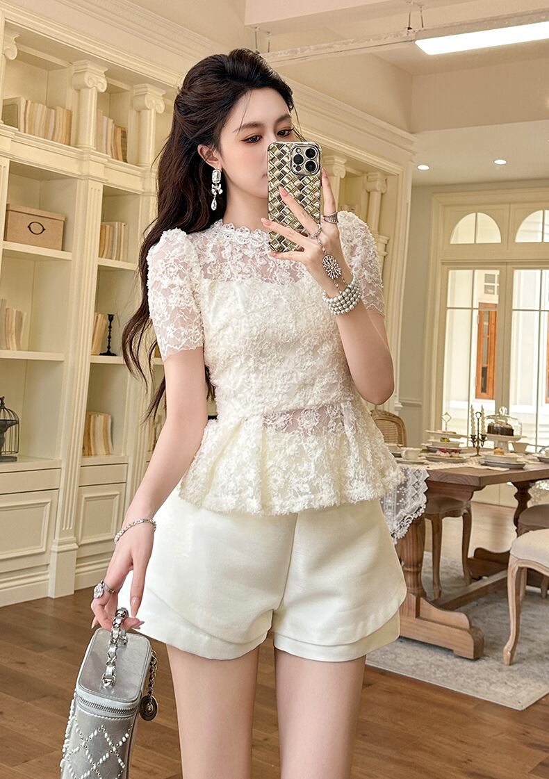 【tops】チュールコンビレースブラウス M33225