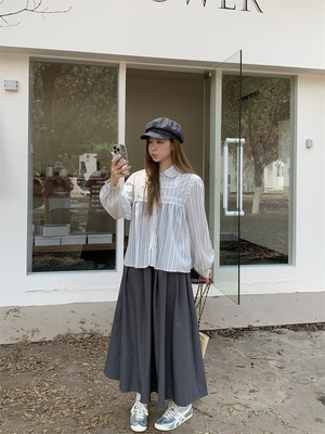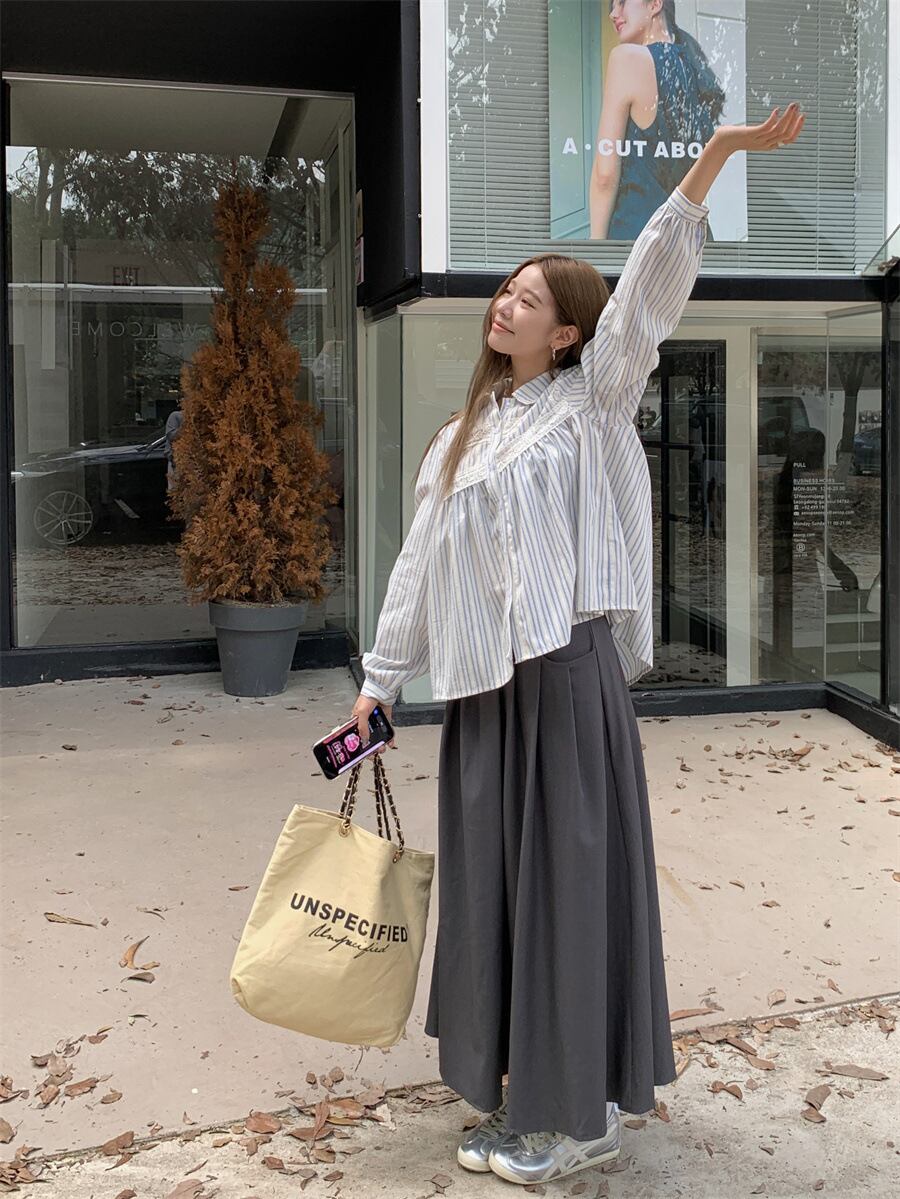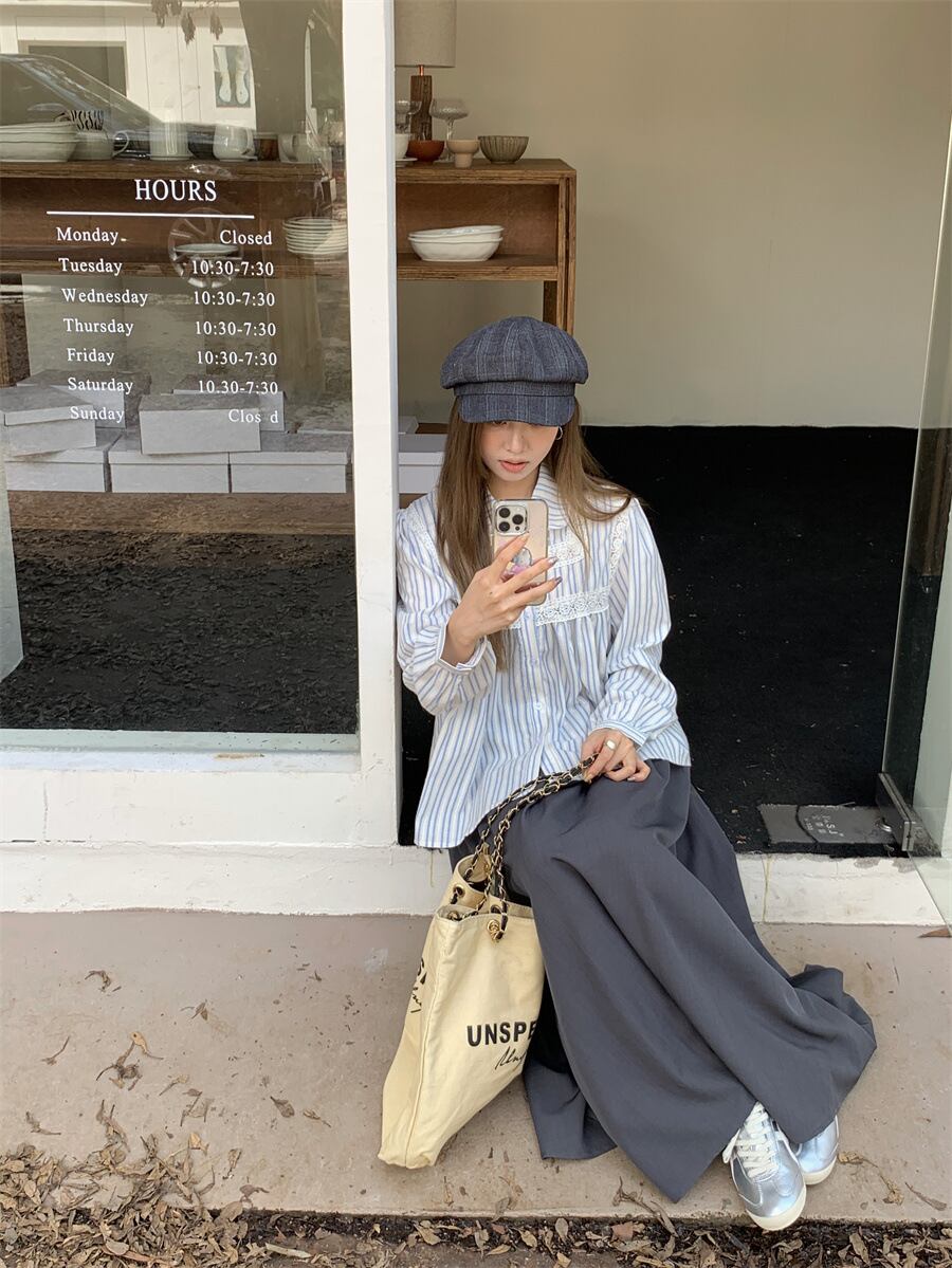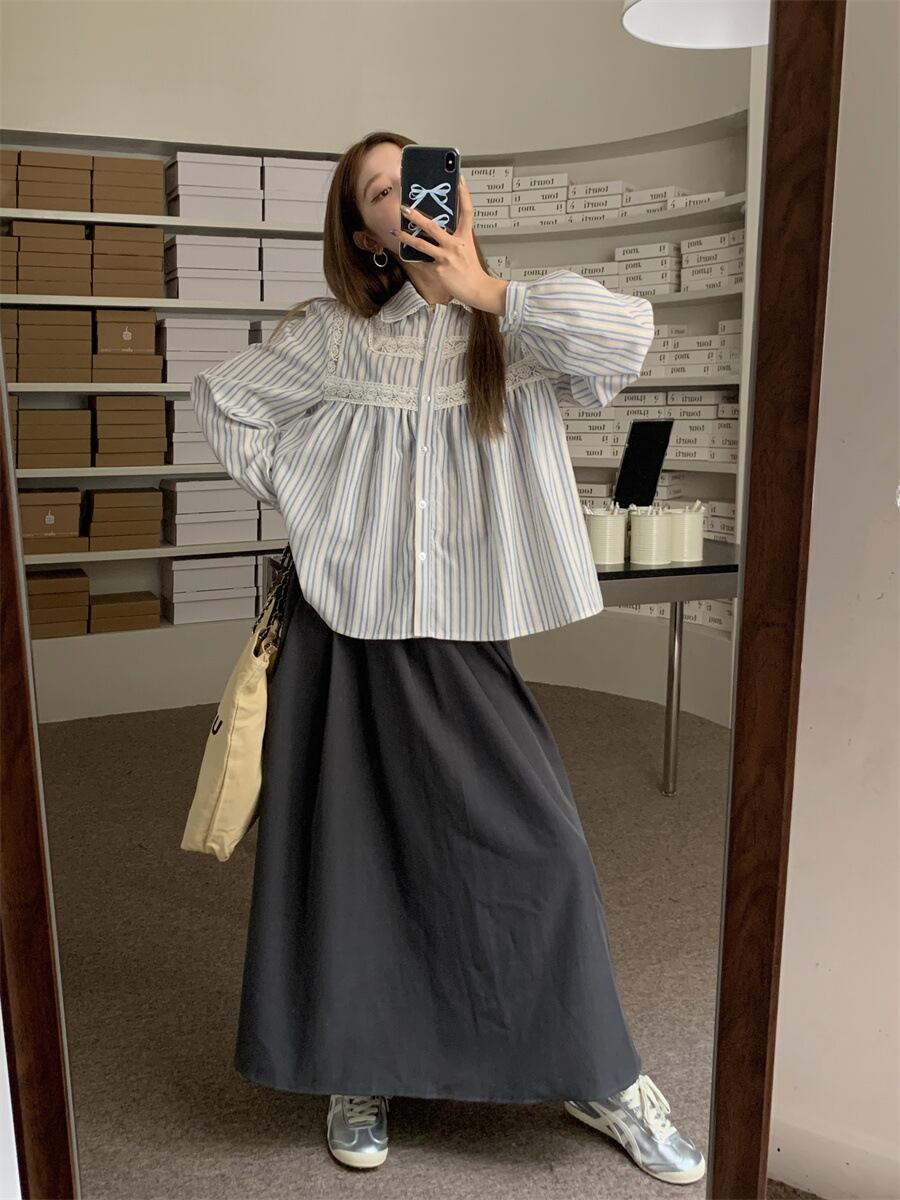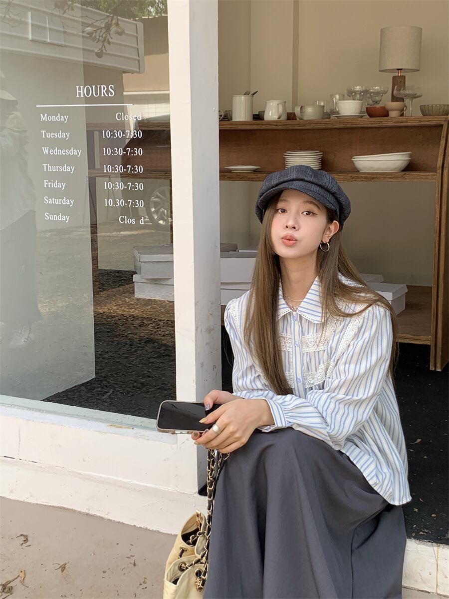 【tops】レースドッキングストライプ柄ブラウス M33238