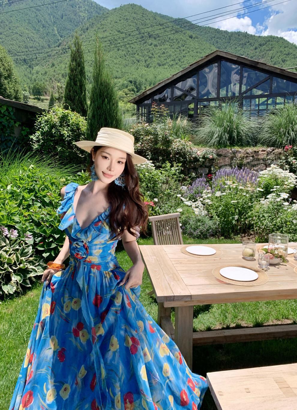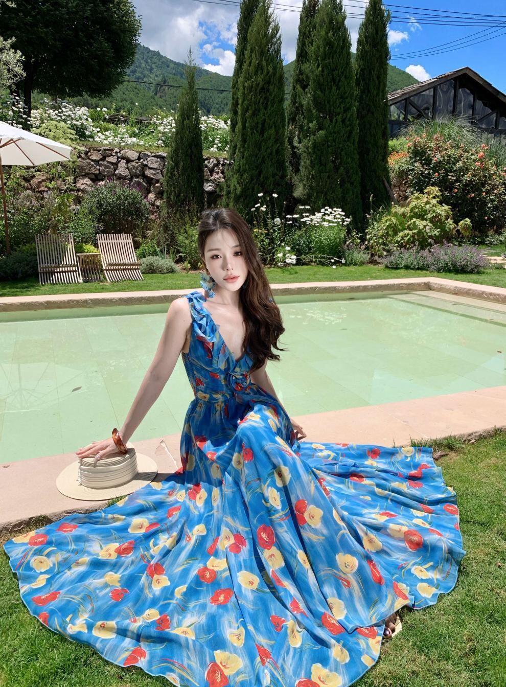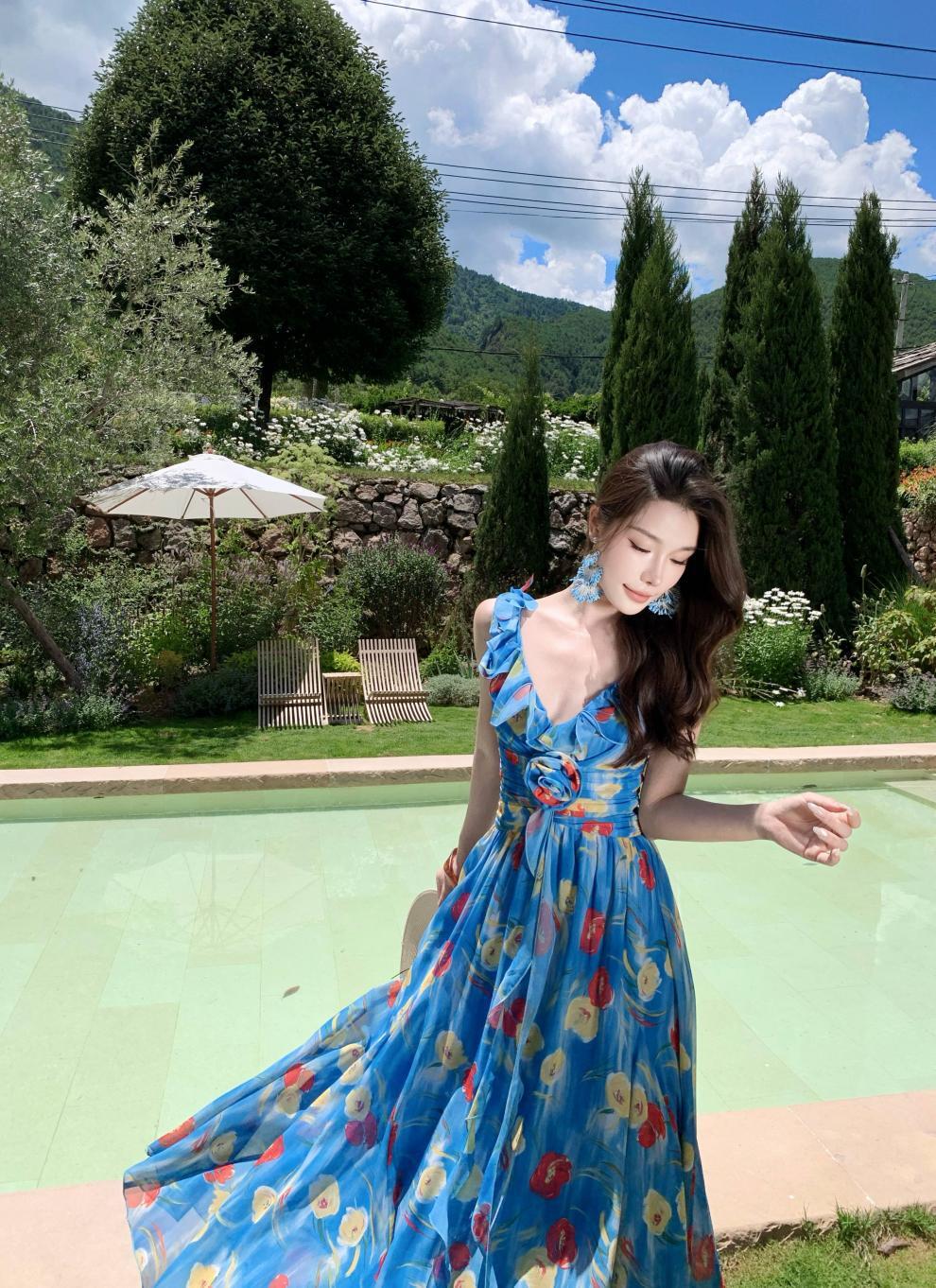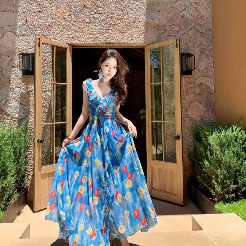 【dress】Vネック花柄ワンピース M33268