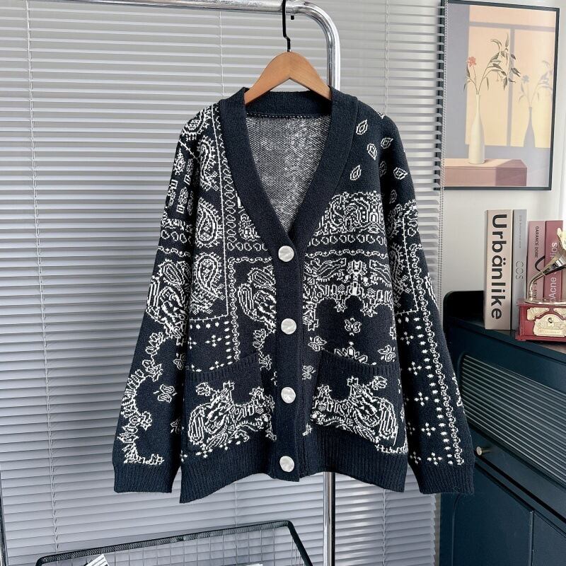 【outer】Vネックジャカードニットカーデ M33280
