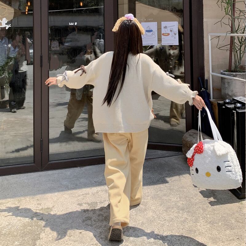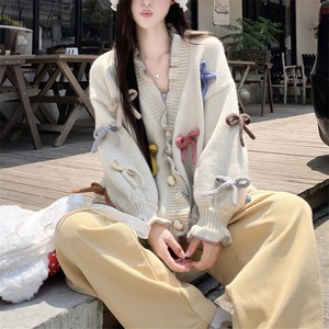 【tops】カラフルリボン付きニットカーディガン Q6268