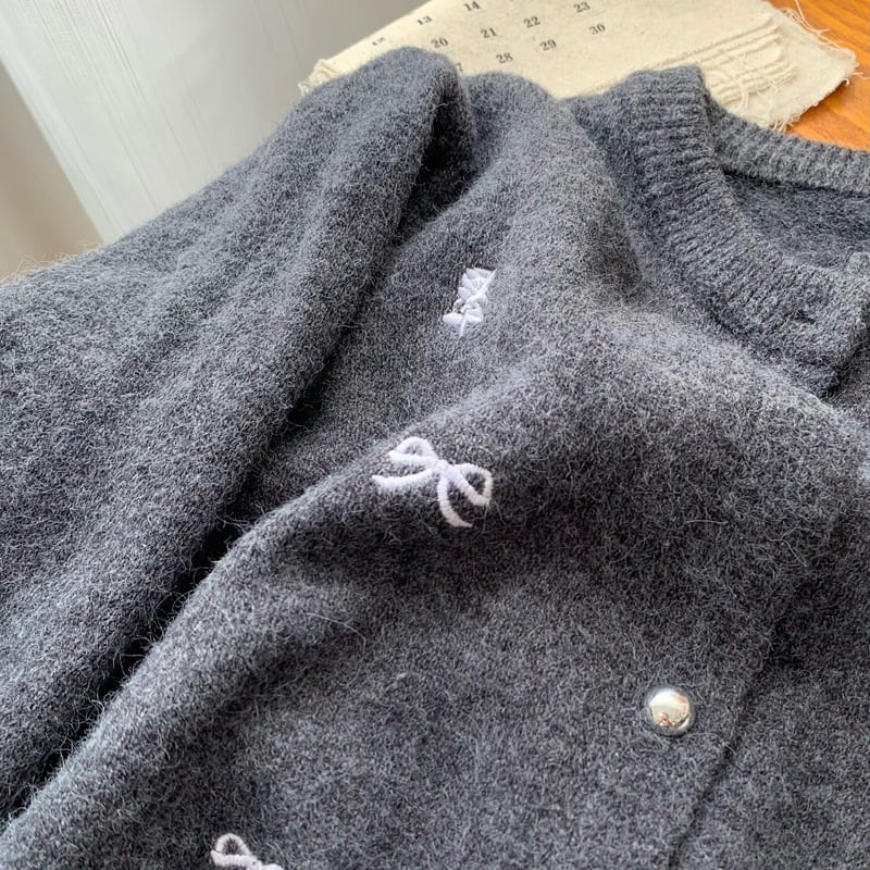 【outer】リボン刺繍ニットカーデ M33372