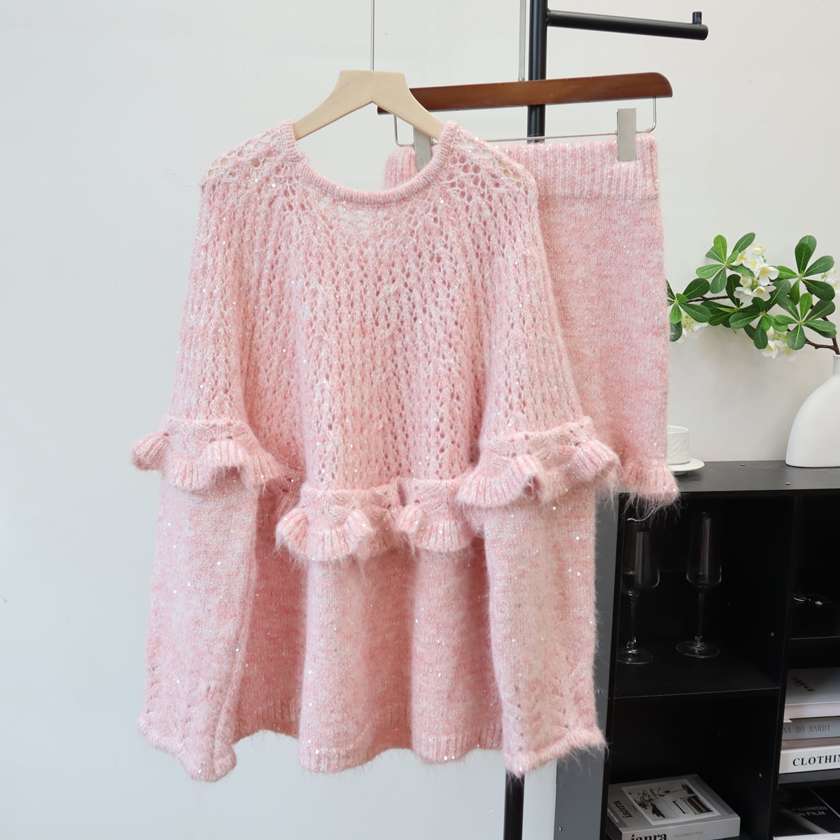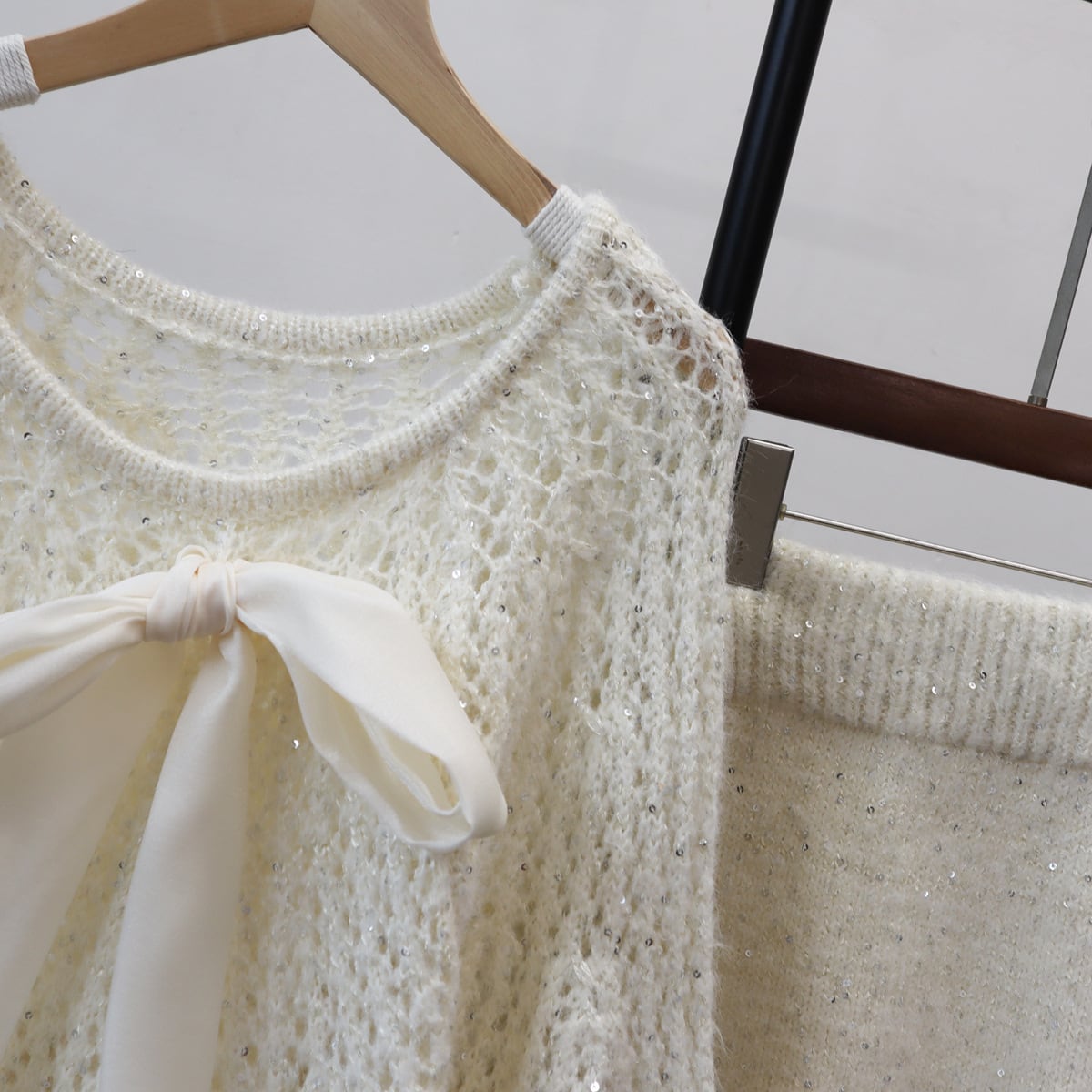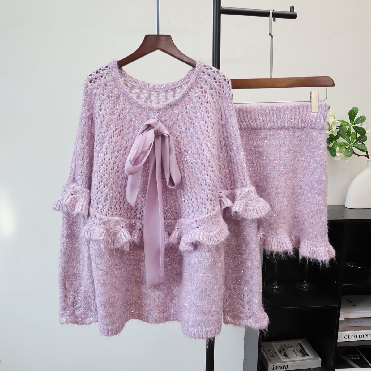 【set】リボン付きフリルニットセーター×スカートセット M33374