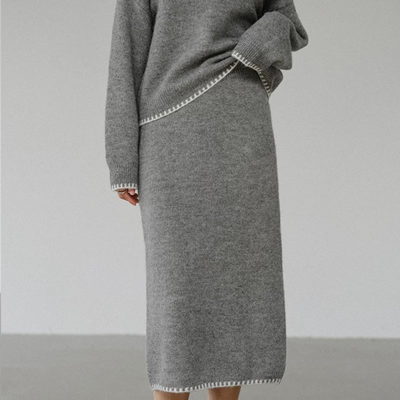 【set】丸首セーター×ニットロングスカートセット Q6284