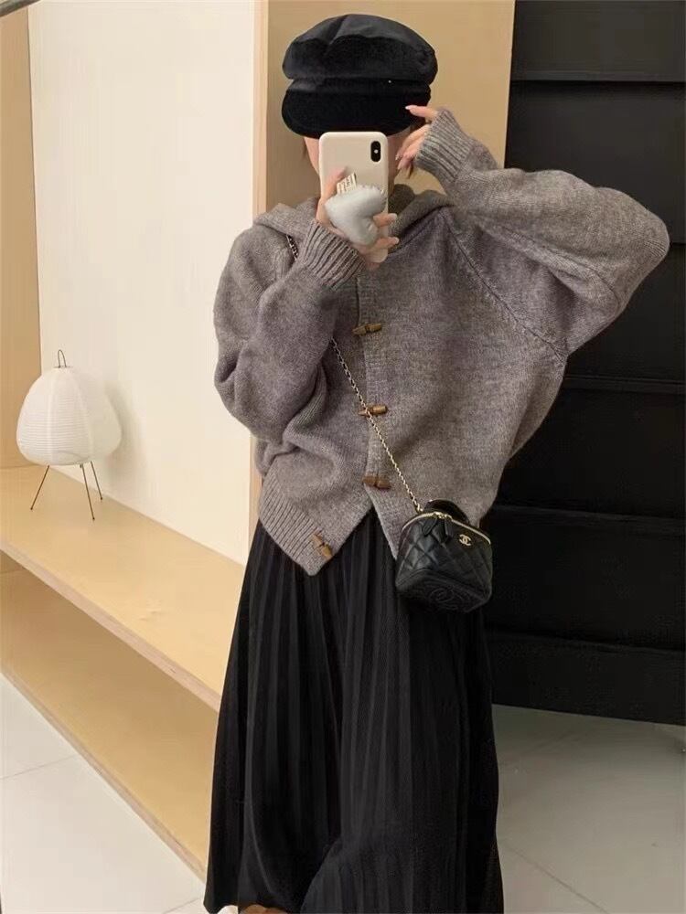 【outer】フード付きニットカーデ M33447