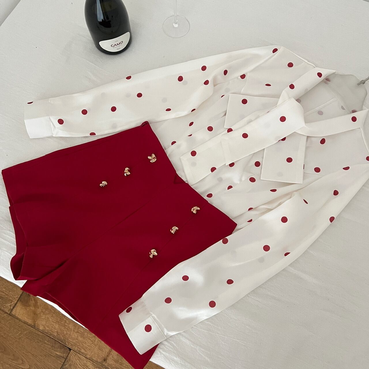 【set】ドット柄ブラウス×ショートパンツセット M33496