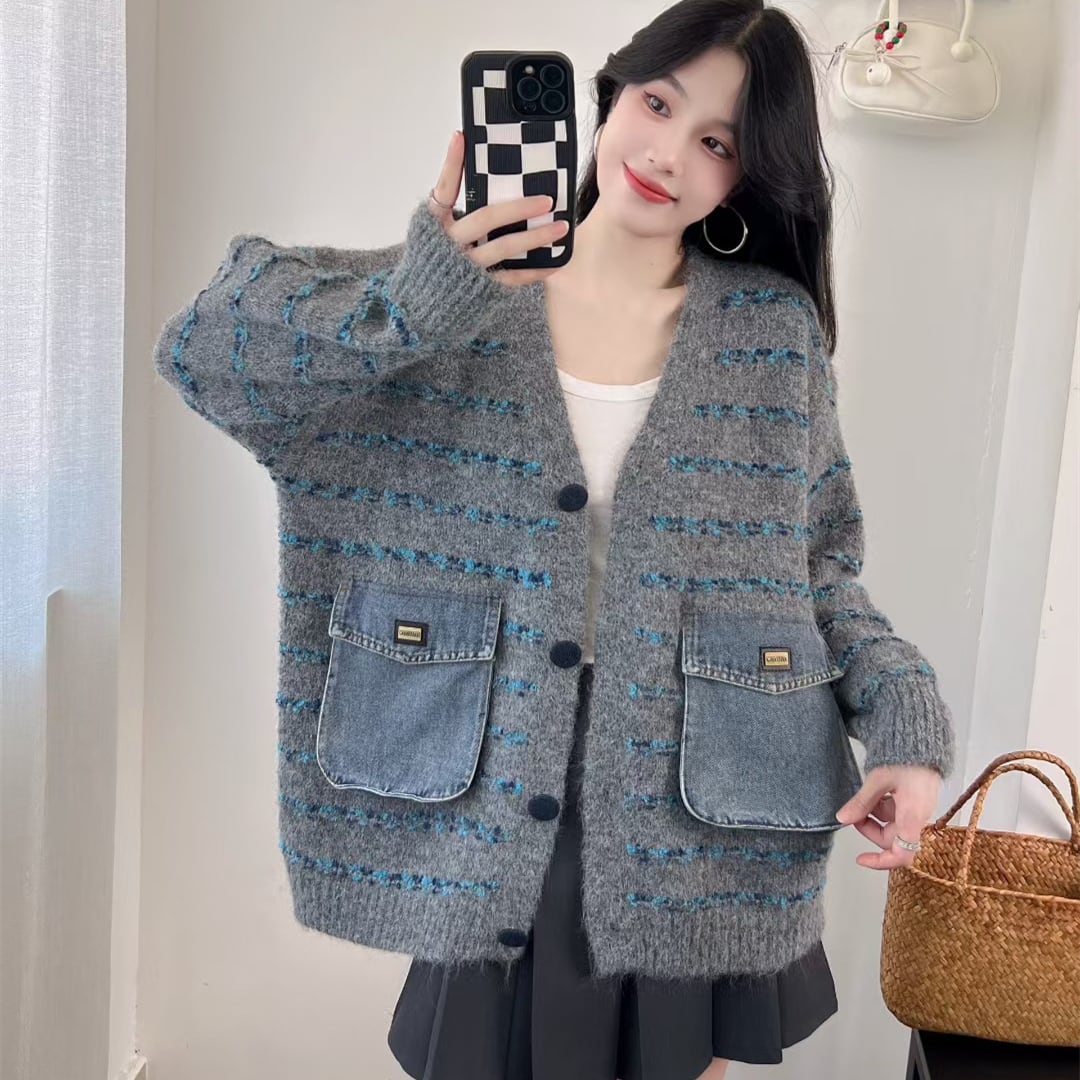 【outer】デニム切り替えニットカーデ M33511