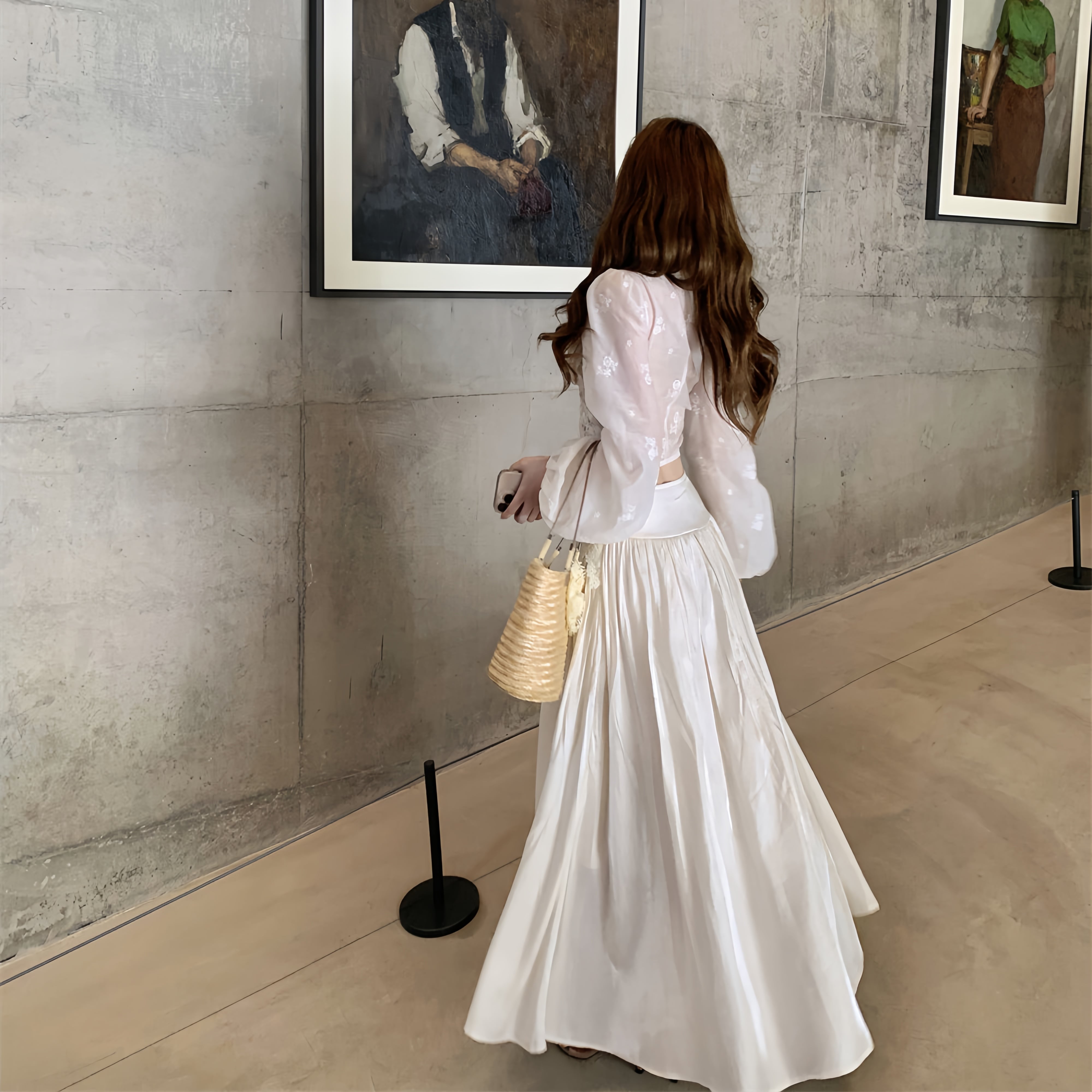 【set】レースドッキングトップス×ロングスカートセット N3289