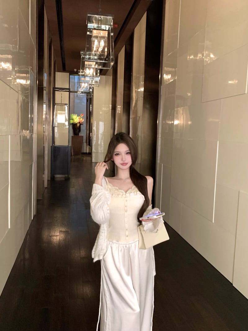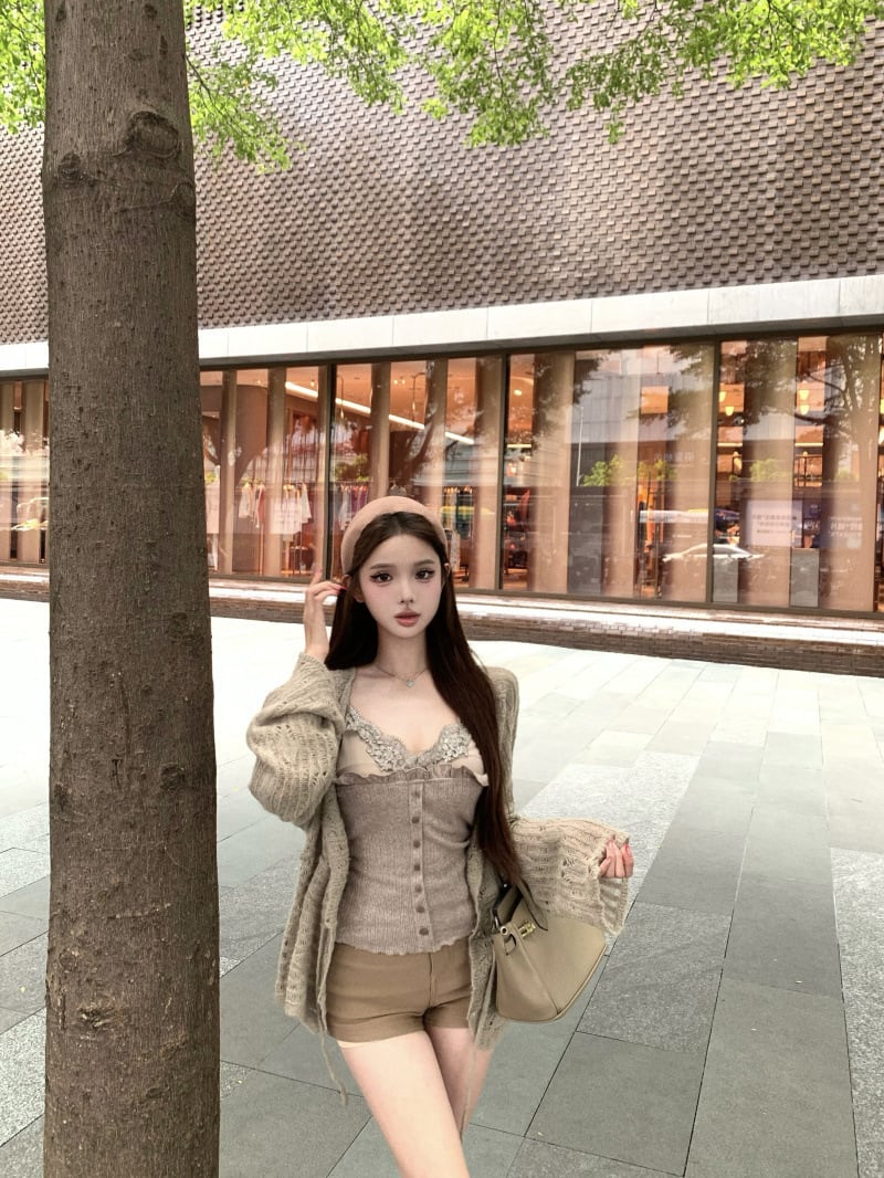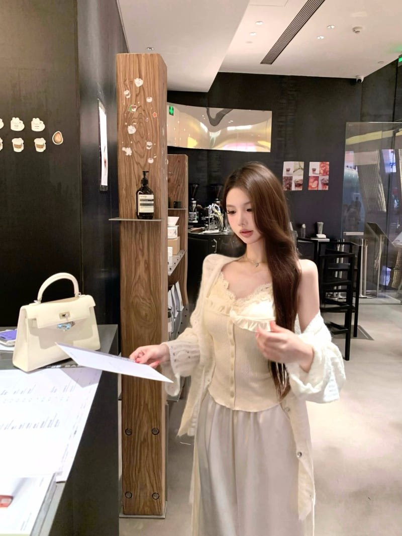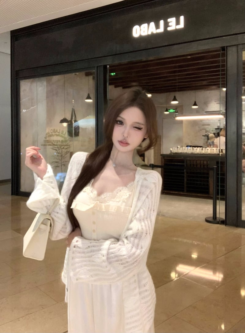 【set】レースドッキングキャミソール×ニットカーデセット M33533