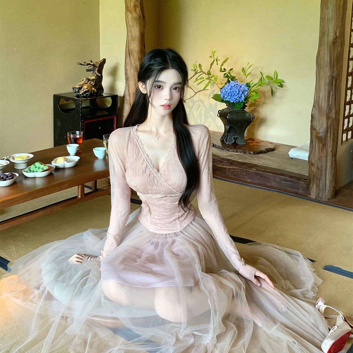 【set】レーストップス×チュールスカートセット N3303