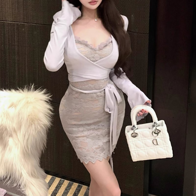 【dress】レースドッキングタイトワンピース Q6310