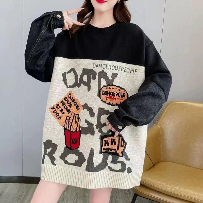 【tops】デニムドッキングニットトップス Q6333